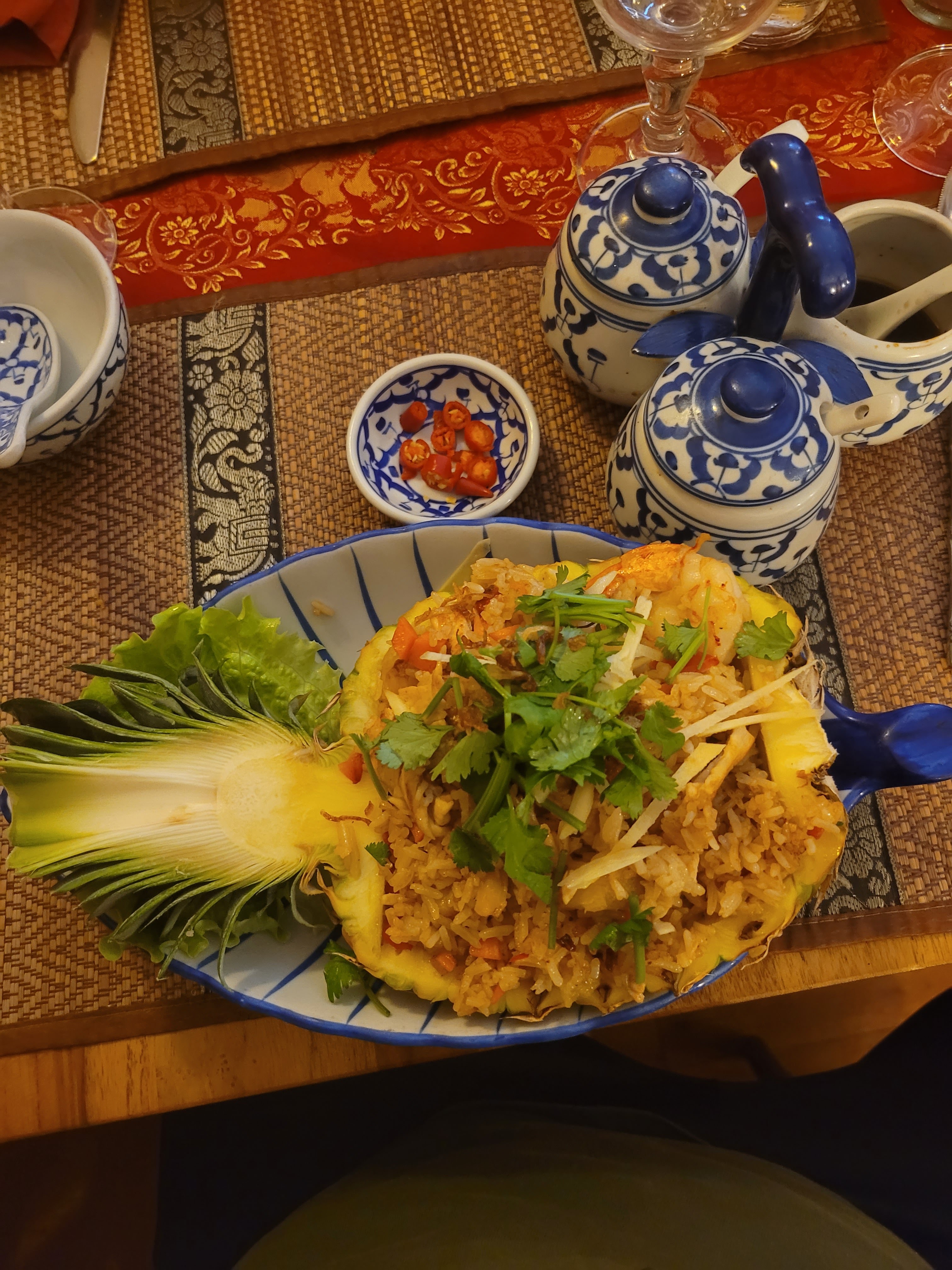 La nourriture est bonne , l’ambiance très typique , musique thaï, le gros bémol la gérante fait du uber eat , elle en oublie ses clients en salle , elle a eu un litige avec la plate forme pendant notre repas du coup elle était au téléphone avec eux en parlant très fort du coup c’était un repas stressant sans qualité de service. Très dommage car ce qu’il y a dans l’assiette est intéressant.