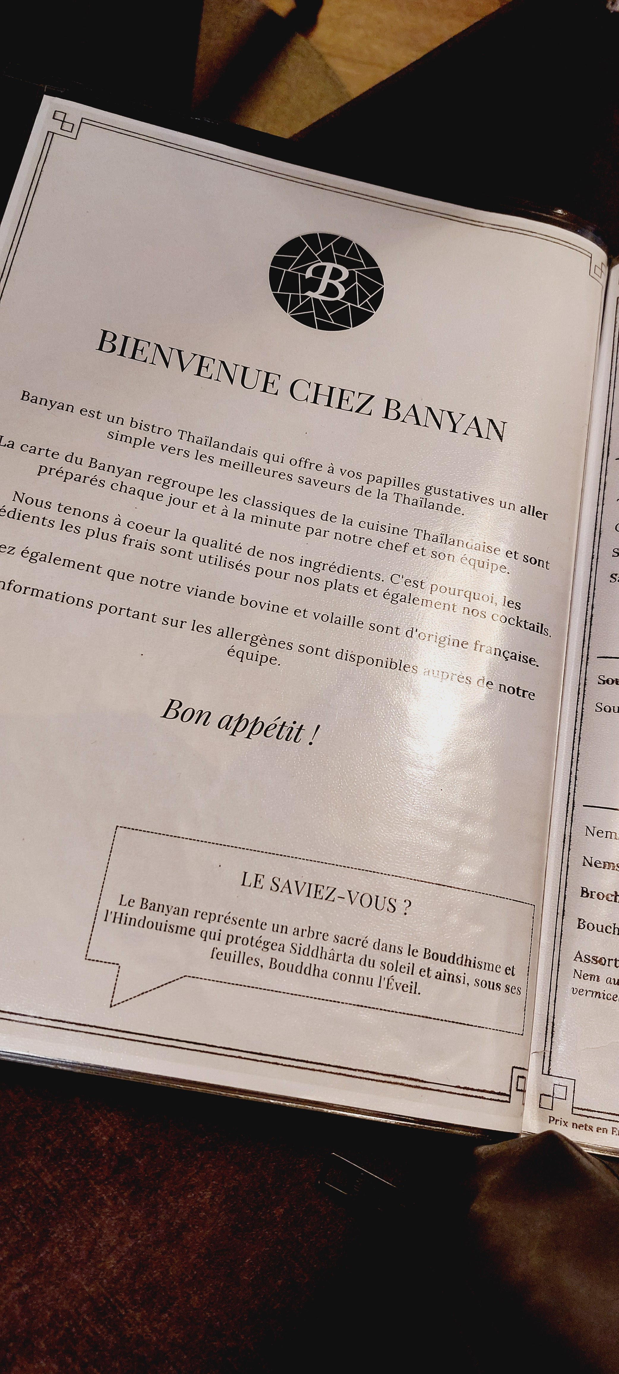 Nous sommes venus manger ce jour au Banyan, c’était une première pour nous. L’accueil est vraiment très chaleureux, l’équipe est au top, souriante et aux petits soins. Les plats sont diversifiées, frais et surtout merveilleusement bons ! Nous sommes habitués à manger des plats thaïlandais mais là nous avons été surpris. Encore merci pour cette soirée, nous reviendrons avec plaisir.