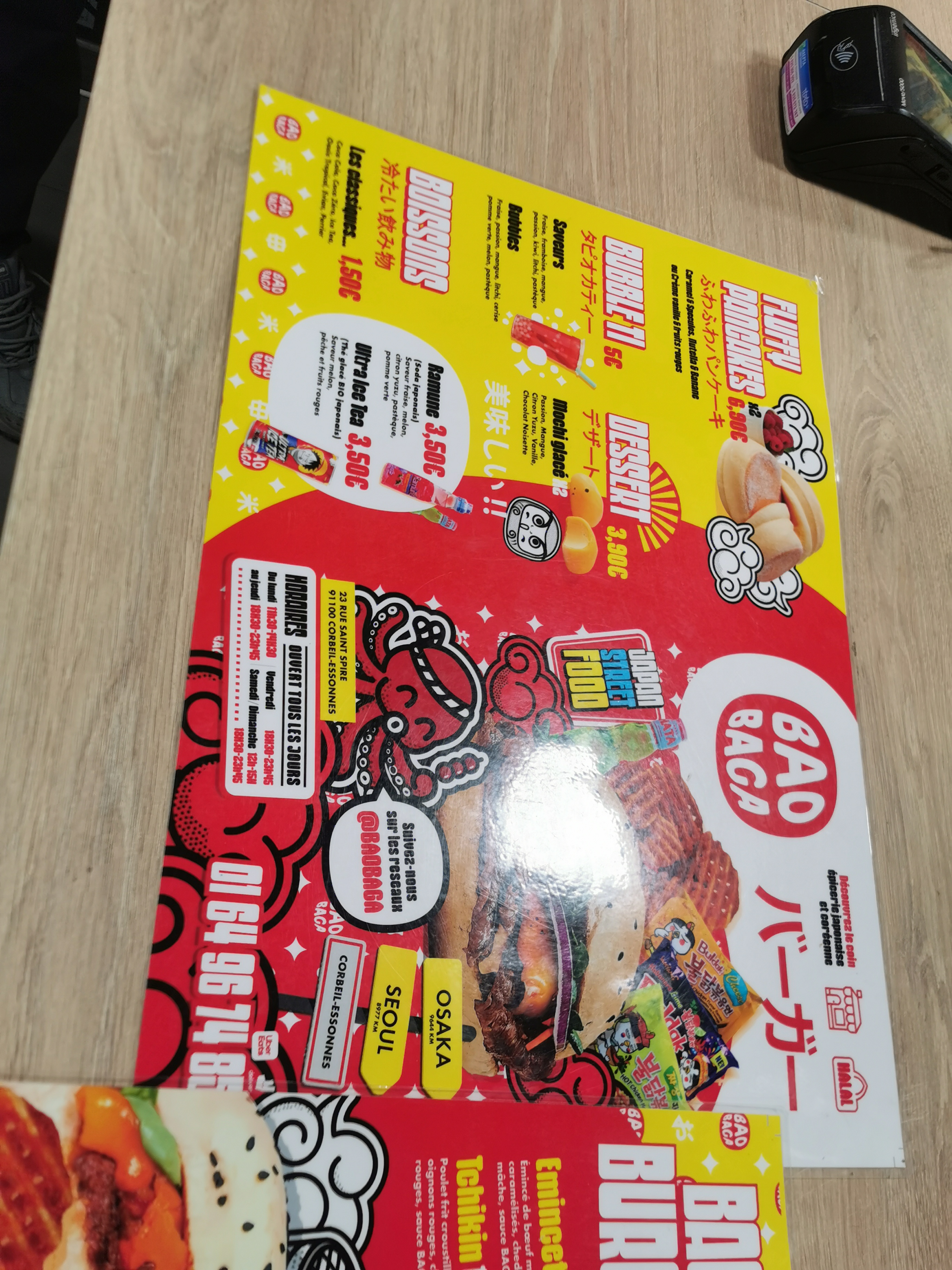 Nous avons tester les bao burgers (celui a l'émincé de bœuf et celui au bœuf fourré au fromage) et nous avons été très agréablement surpris, ils étaient très bons. Et le bubble tea aussi. On a aussi eu le droit à 3 petits bonbons en cadeaux 😊 Merci, nous reviendrons tester les autres plats et desserts proposés sur la carte.