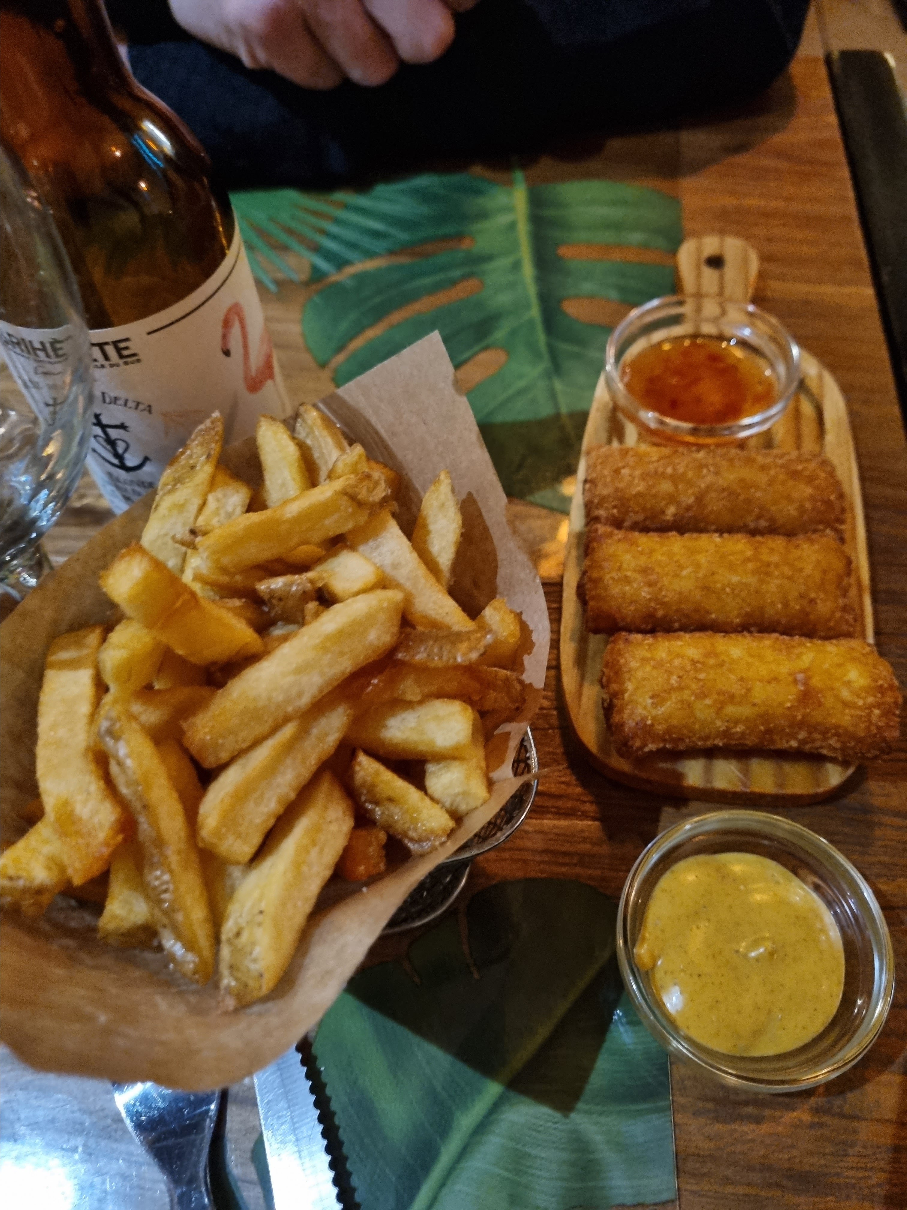 Déjeuner ce midi dans ce petit resto très sympathique. Frites maison Burger avec produits frais. 17,5€ le menu avec boissons. Très sympa.👍