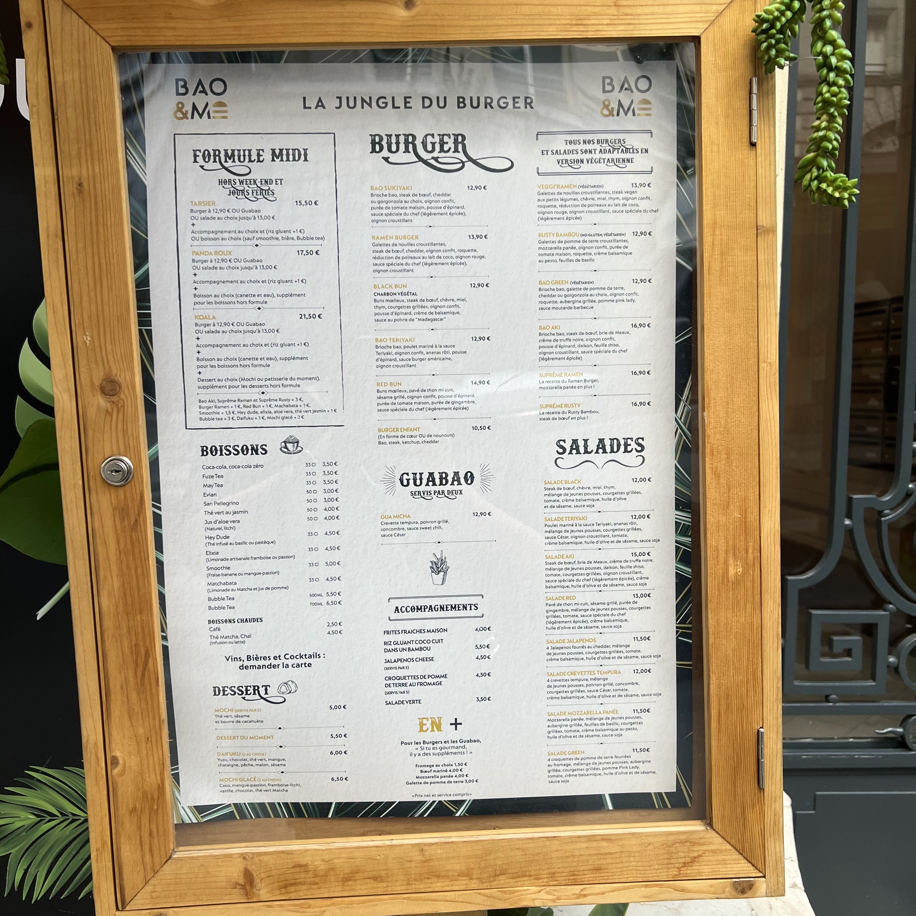 Nous avons passé un très bon moment chez Bao & Me. Arrivé sans réservation, nous avons pu avoir une table pour deux de dernière minute (il vaut mieux réserver). Nous avons pris le classique Bao sukiyaki accompagné de frites maison, c'était excellent. Les bubble tea son très bon et rafraîchissant. Nous recommandons sans hésitation.