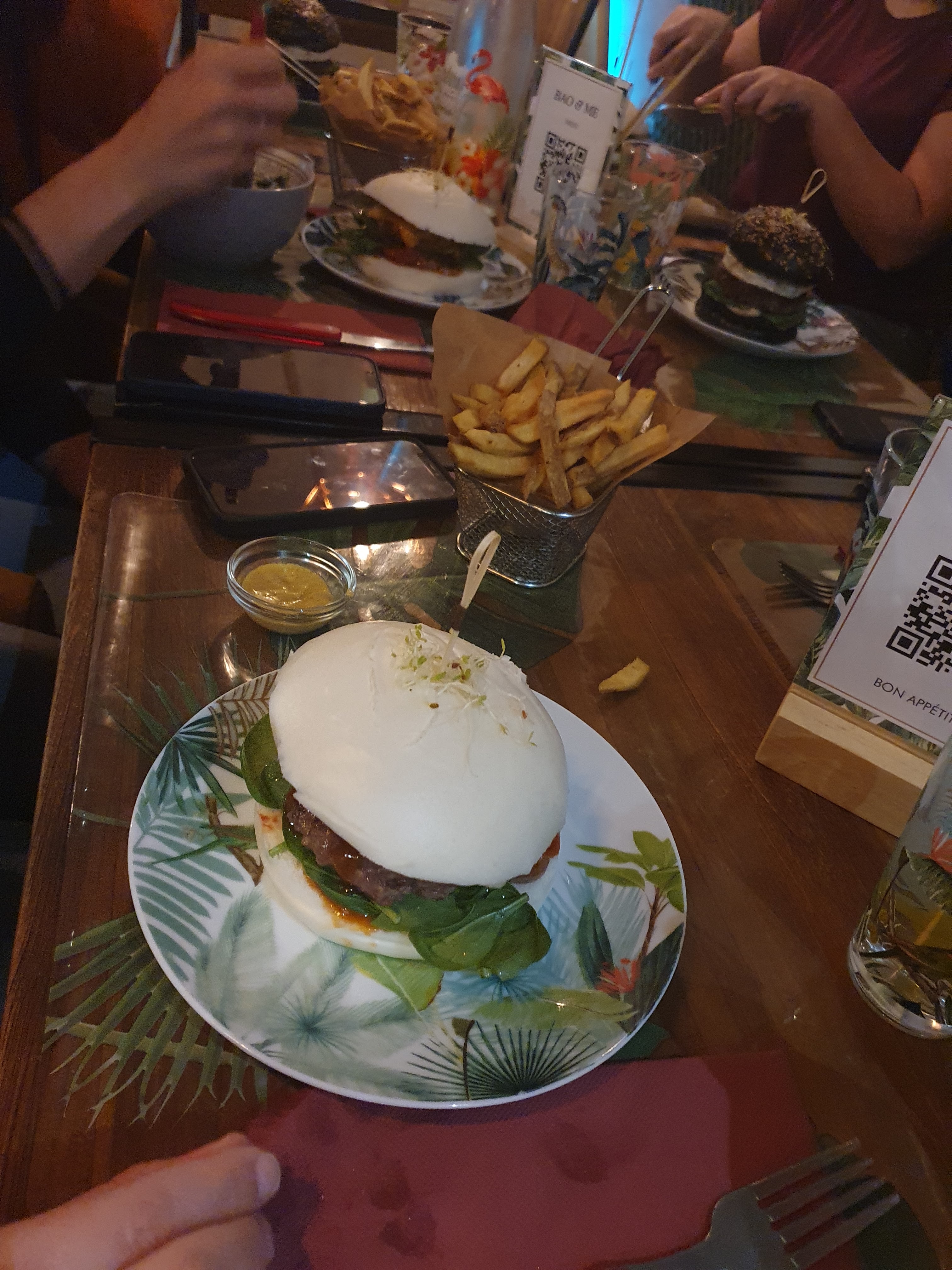 Vraiment…. Belle expérience !! Restaurant tenu par des français, il propose des burgers chinois appelé également des Bao et qui sont un délice ! Au niveau du lieu, endroit petit mais bien décorer du style paradisiaque. Concernant le service et le personnel : souriants, accueillants et réactifs. Nos plats ont été servis très rapidement ! Pour le prix : j’ai réservé avec la fourchette (20% de réduction), et dans l’ensemble, c’est très abordable surtout par rapport à la quantité ! Le burger que j’ai pris est très copieux ! Avec frite maison en supplément. J’ai pris un suprême ramen burger. J’ai payé : 16,72€. Vraiment je vous le recommande.