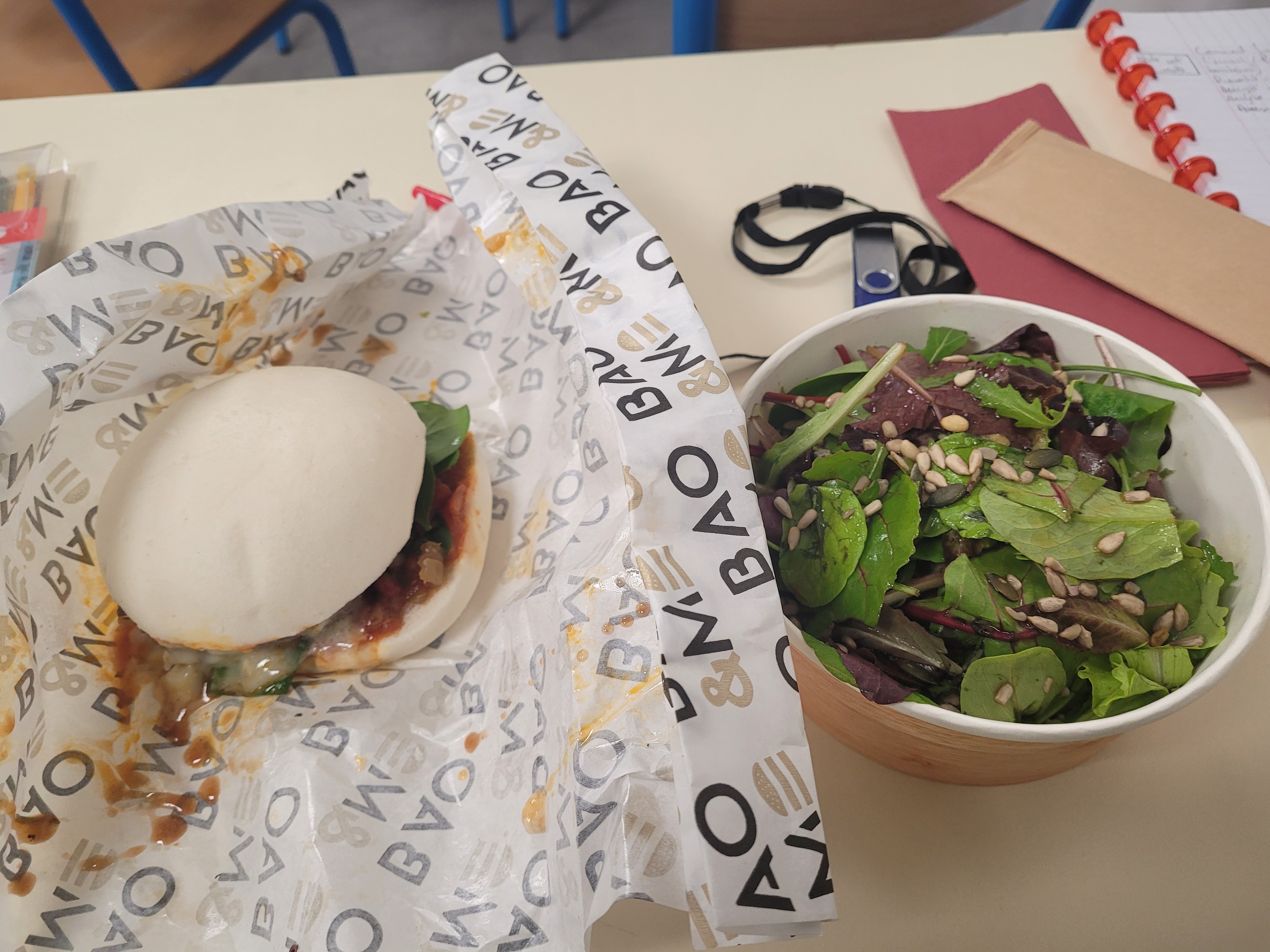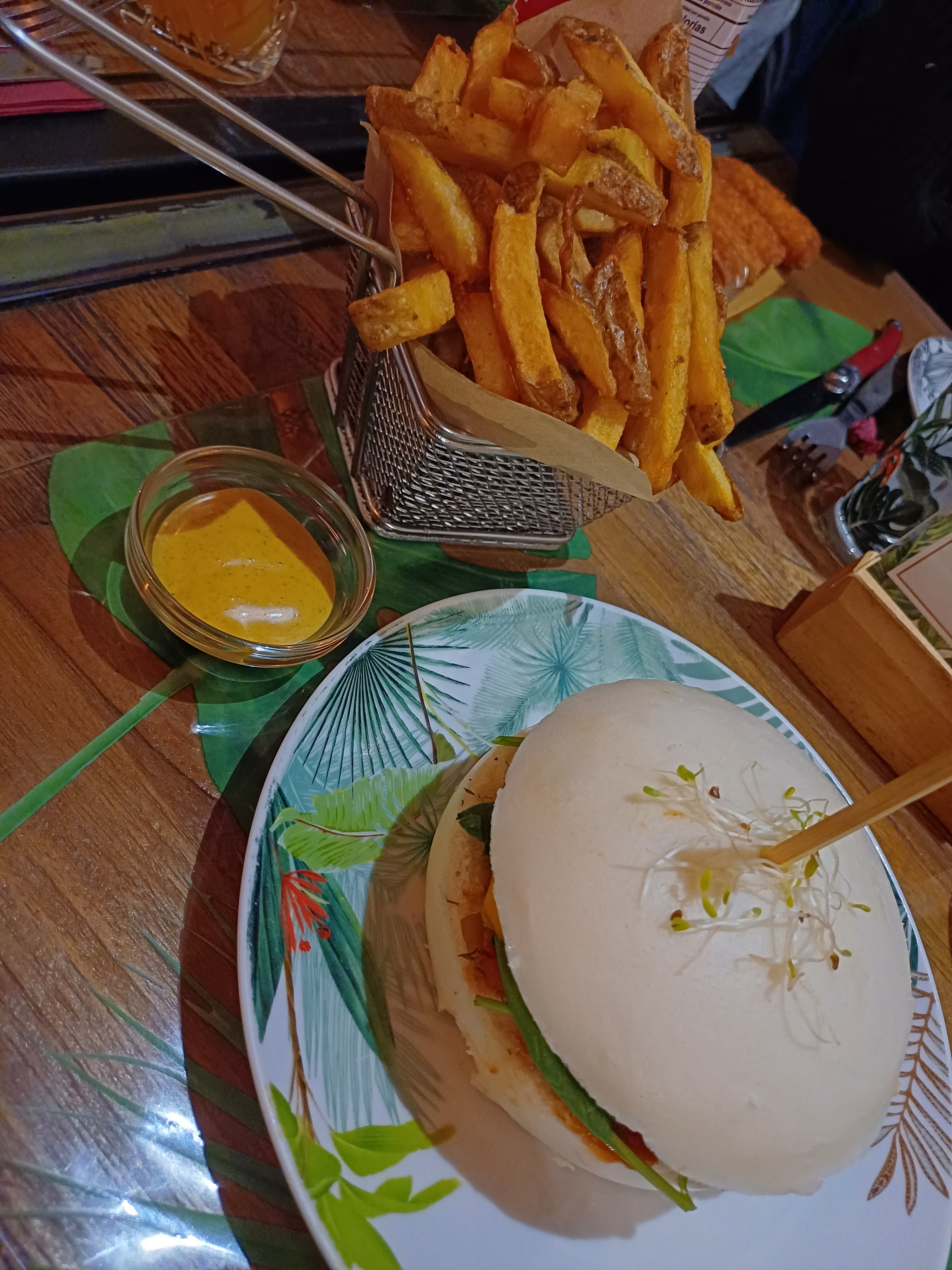 Excellent !! J'ai adoré le bao Green (vegetarien) avec un supplément mozzarella panée c'était vraiment parfait ! Les options végétariennes sont nombreuses et excellentes ! C'est copieux :) Mention spéciale à la sauce curry mangue des frites qui était très bonne 🧡