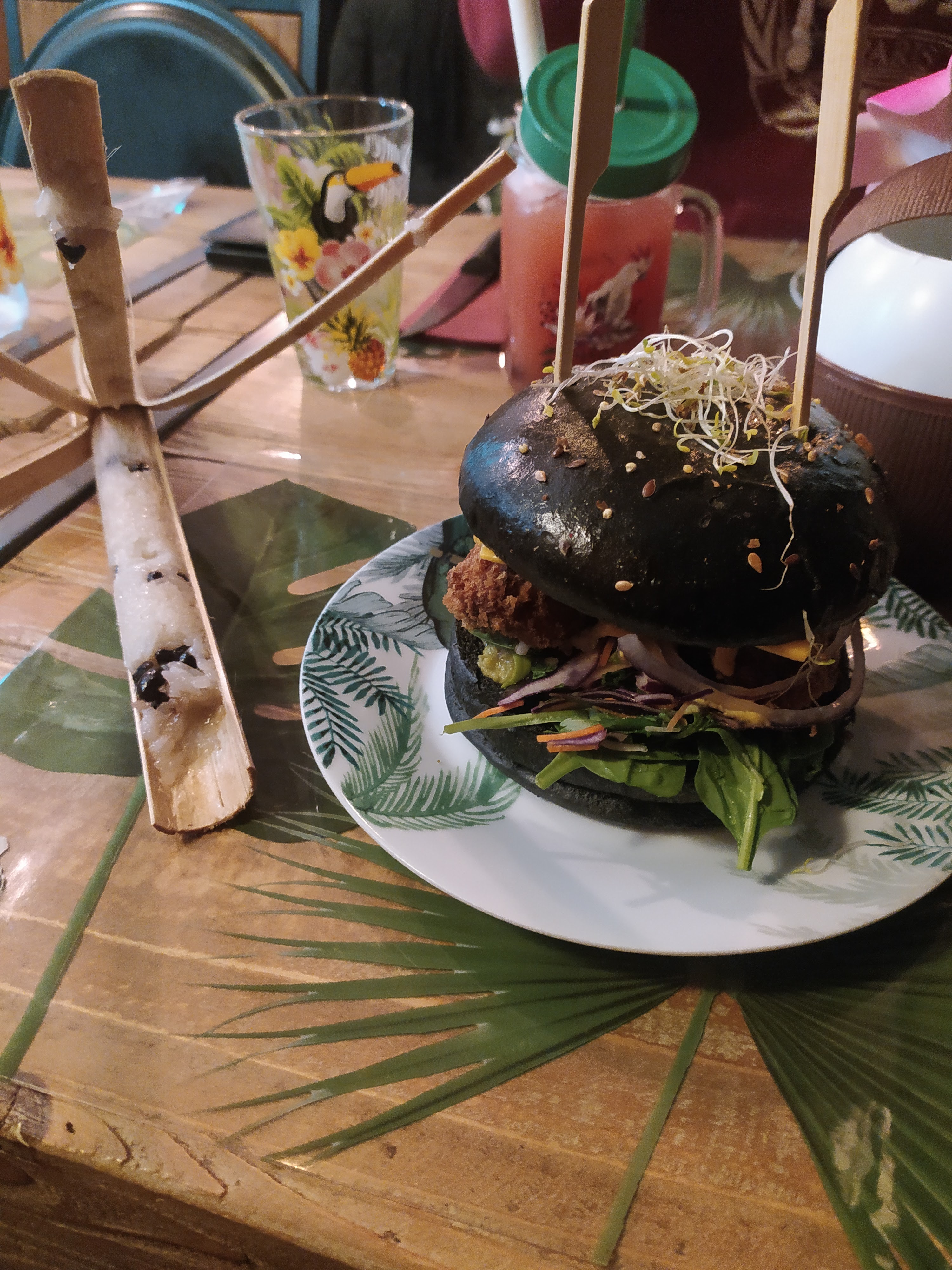 Le burger est bon et original. Le truc du riz gluant dans le bambou, a supprimer de la carte .