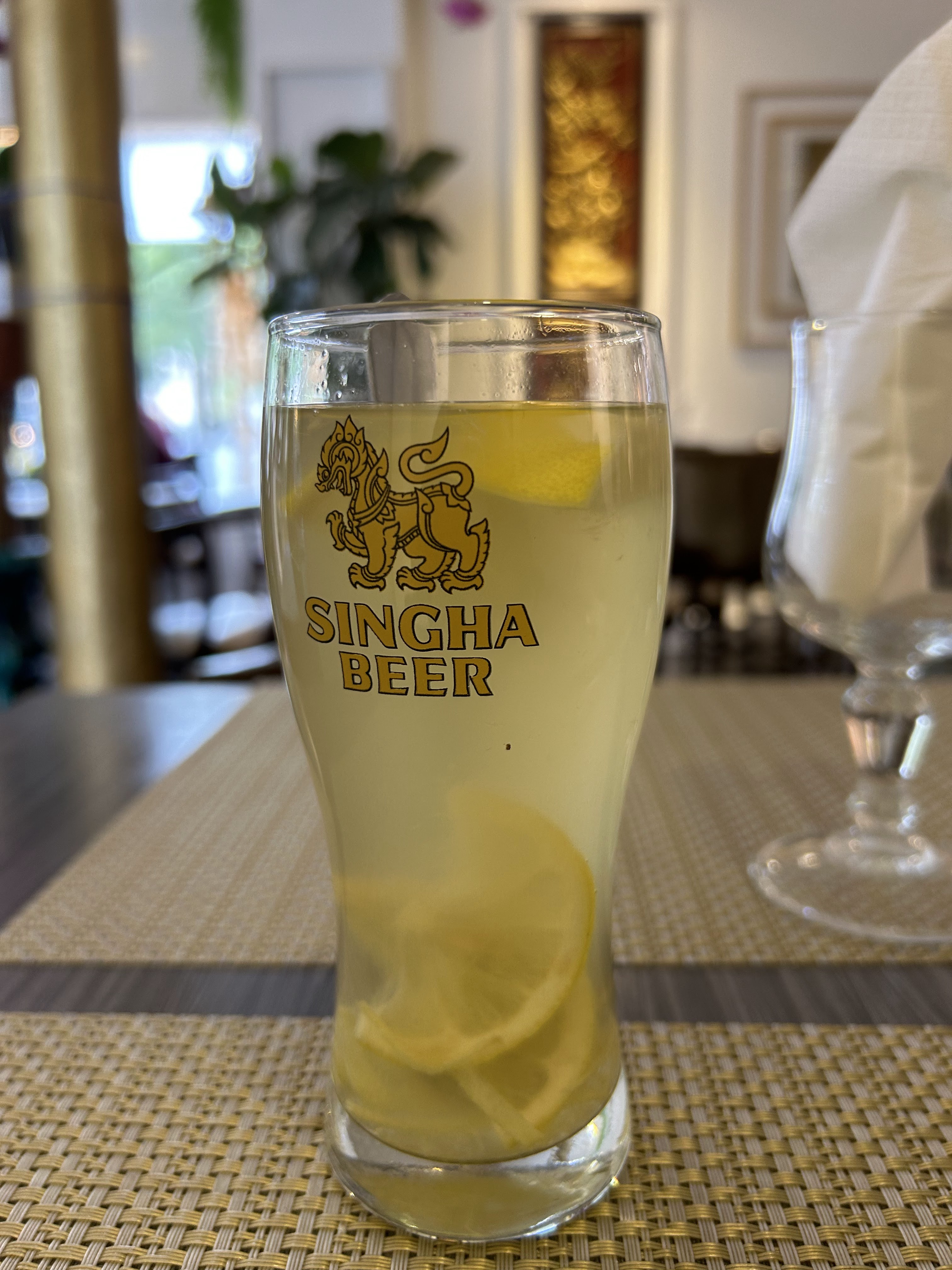 Merci pour ce repas en terrasse. Choix et qualité au rendez vous pour un prix correct. dans le désordre et de mémoire voici ce que nous avons consommé : Poisson à la sauce basilique / Sauté de magret de canard / riz blanc vapeur/ riz cantonnais / Bière Thaïlandaise Singha (5°) Je reviendrais . 👍