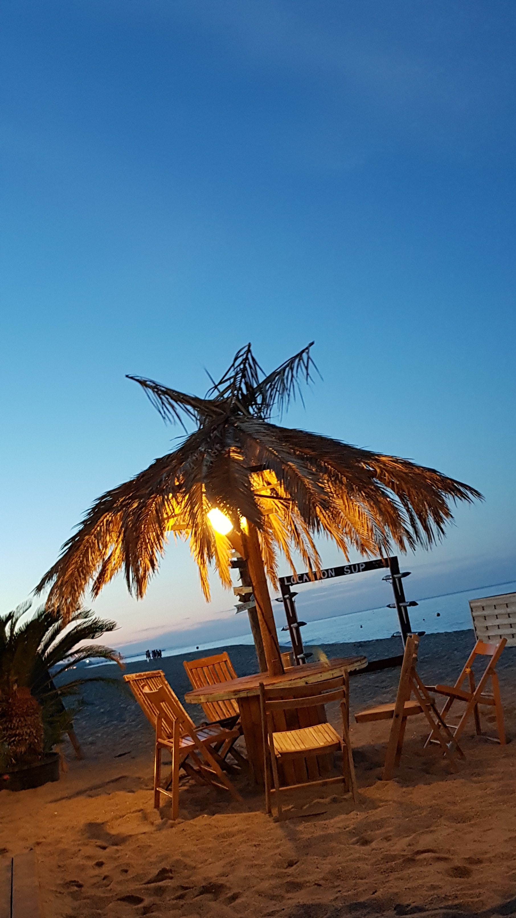 Paillote très sympa sur la plage en mode zen et détente. Tapas très bien .Le soir ambiance cool et détendue ,très bien pour boire une sangria en papotant avec ses amis .Seul bémol ils arrêtent le service des plats à 21h30 21h45 .Équipe très sympa .