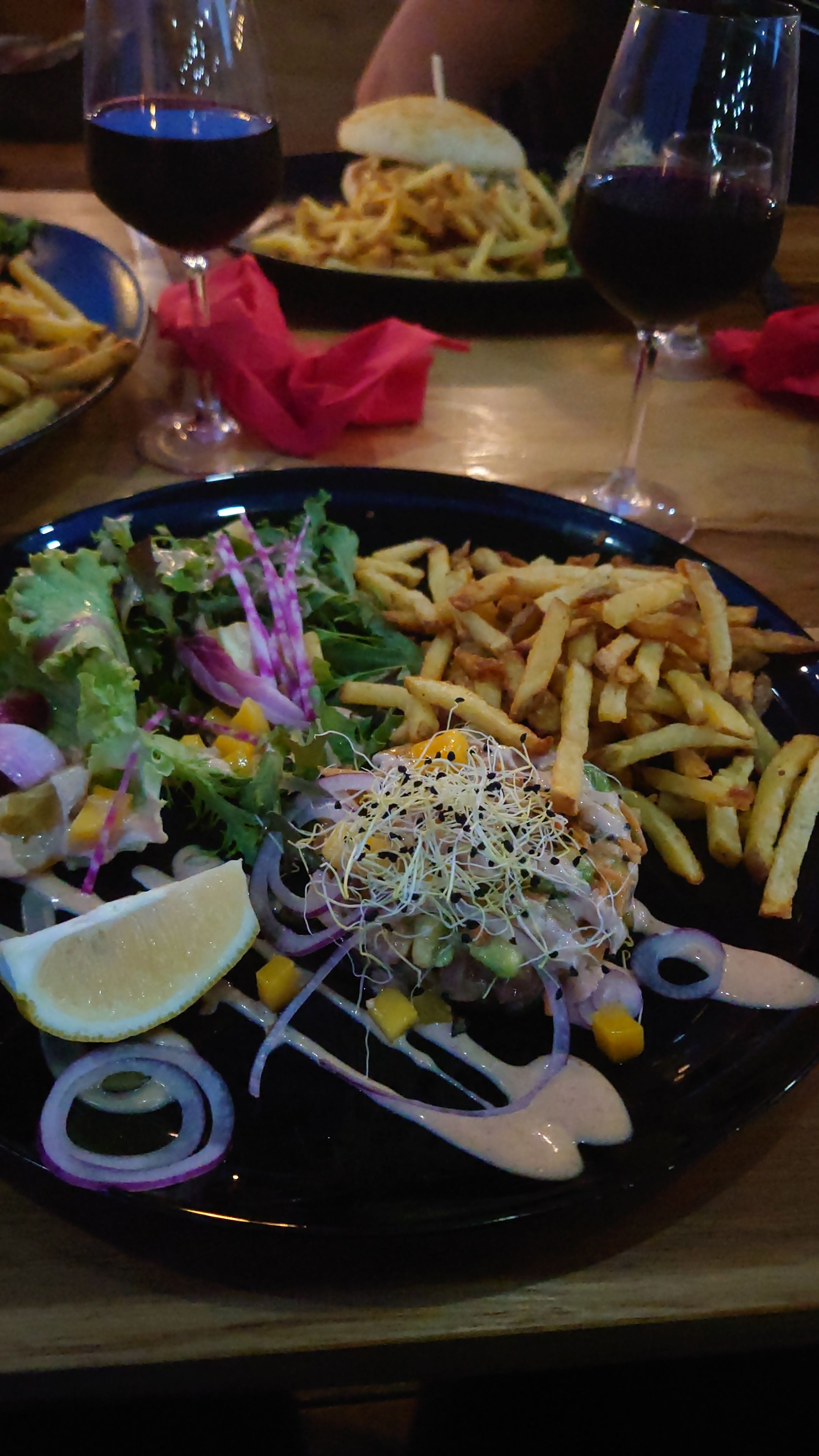 Nous sommes venus en famille à 8 jeudi soir, nous mettons jamais d’avis ça sera donc le premier . Ambiance au top et conviviale avec le petit concert . La petite a pu danser et jouer aux jeux qui sont installés pour les enfants . Le service extra !!! Les serveuses souriantes et agréable . Nous avons deux petits jack, elles ont été acceptées également . Le Burger j’en ai jamais mange des aussi bons ! Les prix sont corrects au vu de la qualité ! Le tataki de thon une dinguerie !!!! 🥰 la déco et le cadre , superbe !! Une partie de la famille est partie mais il est sur qu’avant la fin de nos vacances nous allons y retourner à deux ! Donc à la semaine prochaine 😍😍