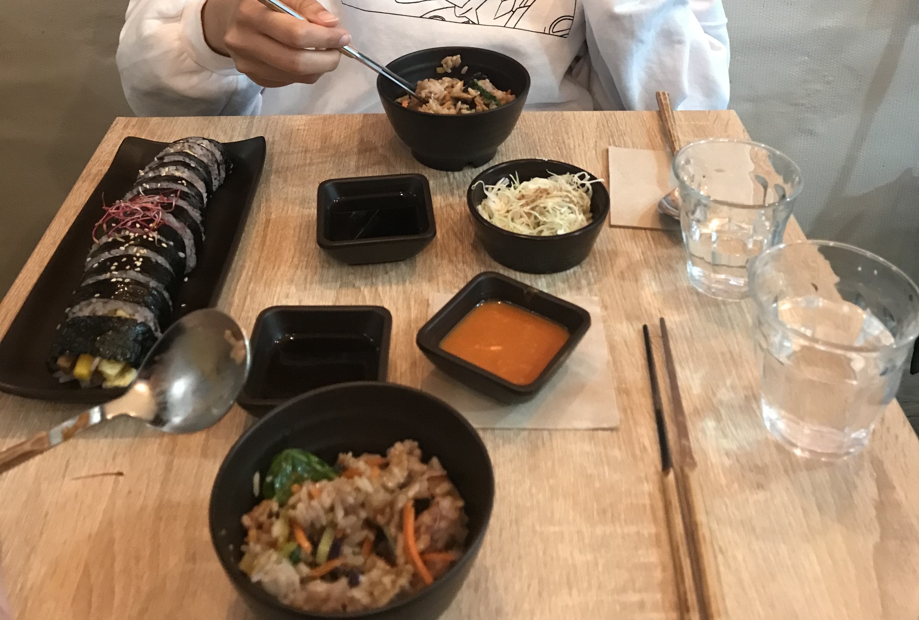 C'est petit et charmant, l'équipe est adorable, et le kimbap franchement bien. En revanche le chou rouge dans le bibimbap, pourquoi donc ? La viande n'était pas folle non plus. Dommage parce que encore une fois, le kimbap est vraiment coréen.