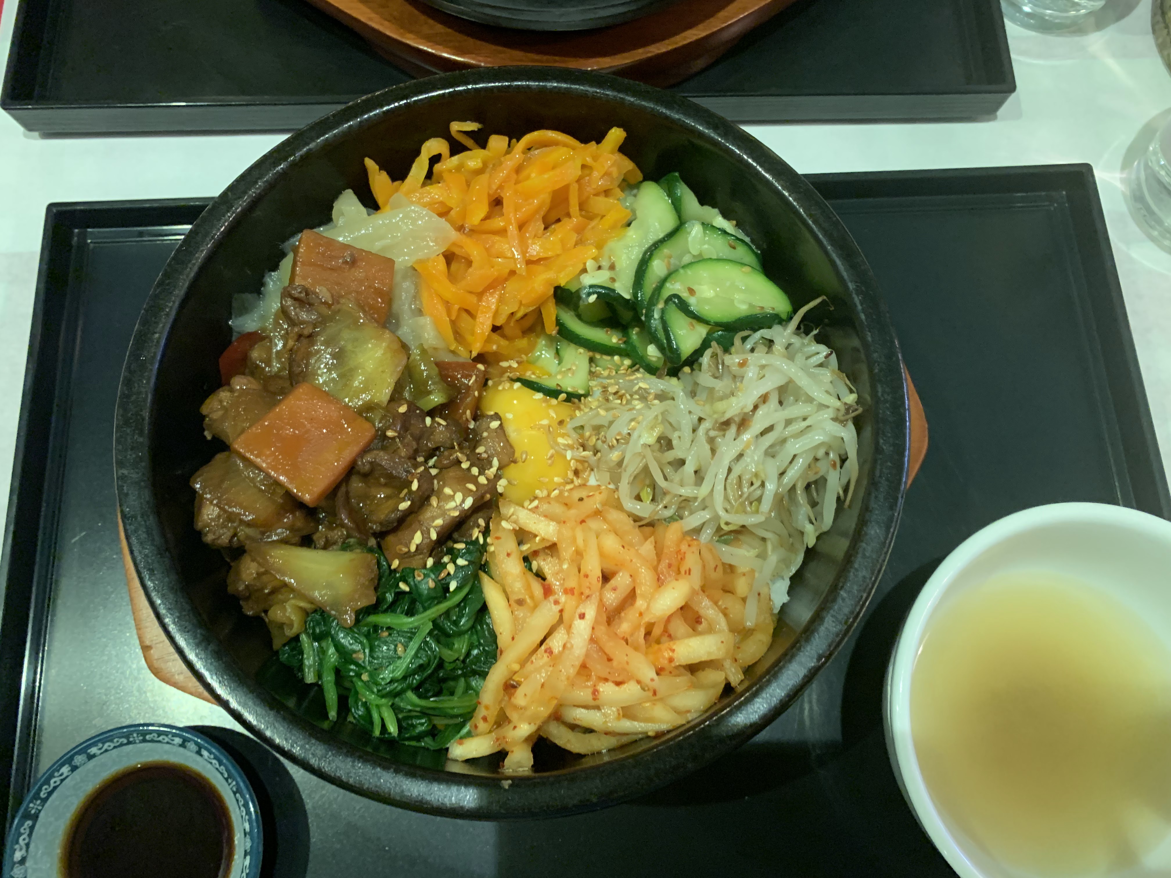 Un bimbimbap très bon ! Le riz était peut-être un poil cuit. Un bon rapport qualité/quantité/prix.