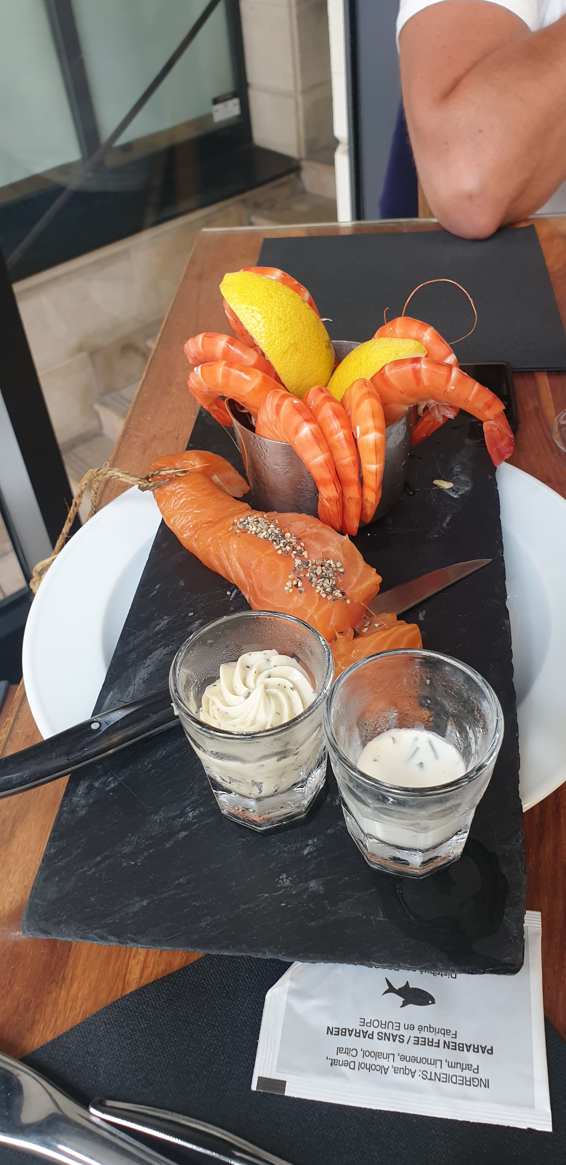Parfait ! Le plateau de fruit de mer avec saumon fumé et crevettes était juste parfait !