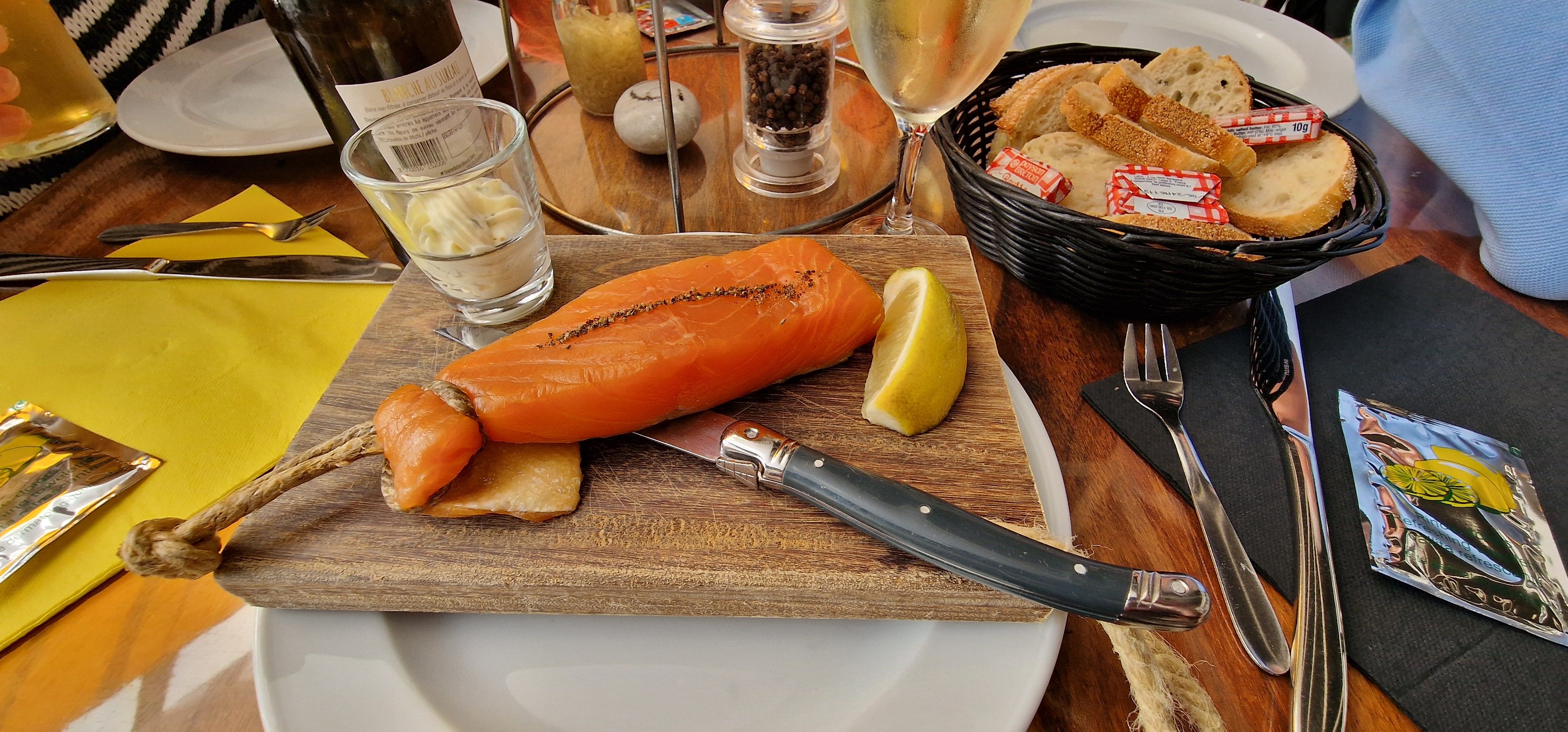 Bon un endrois trouvé par hasard en allant chercher une moto de anglet à arcachon que dire juste pour le saumon légèrement fumé un choix surprenant de saveurs et de tendresse faite le voyage vous serez pas déçu sinon ma copine elle c'est les huîtres et elle c'est également régalé voilà merci à vous pour cette découverte 😘😋✌
