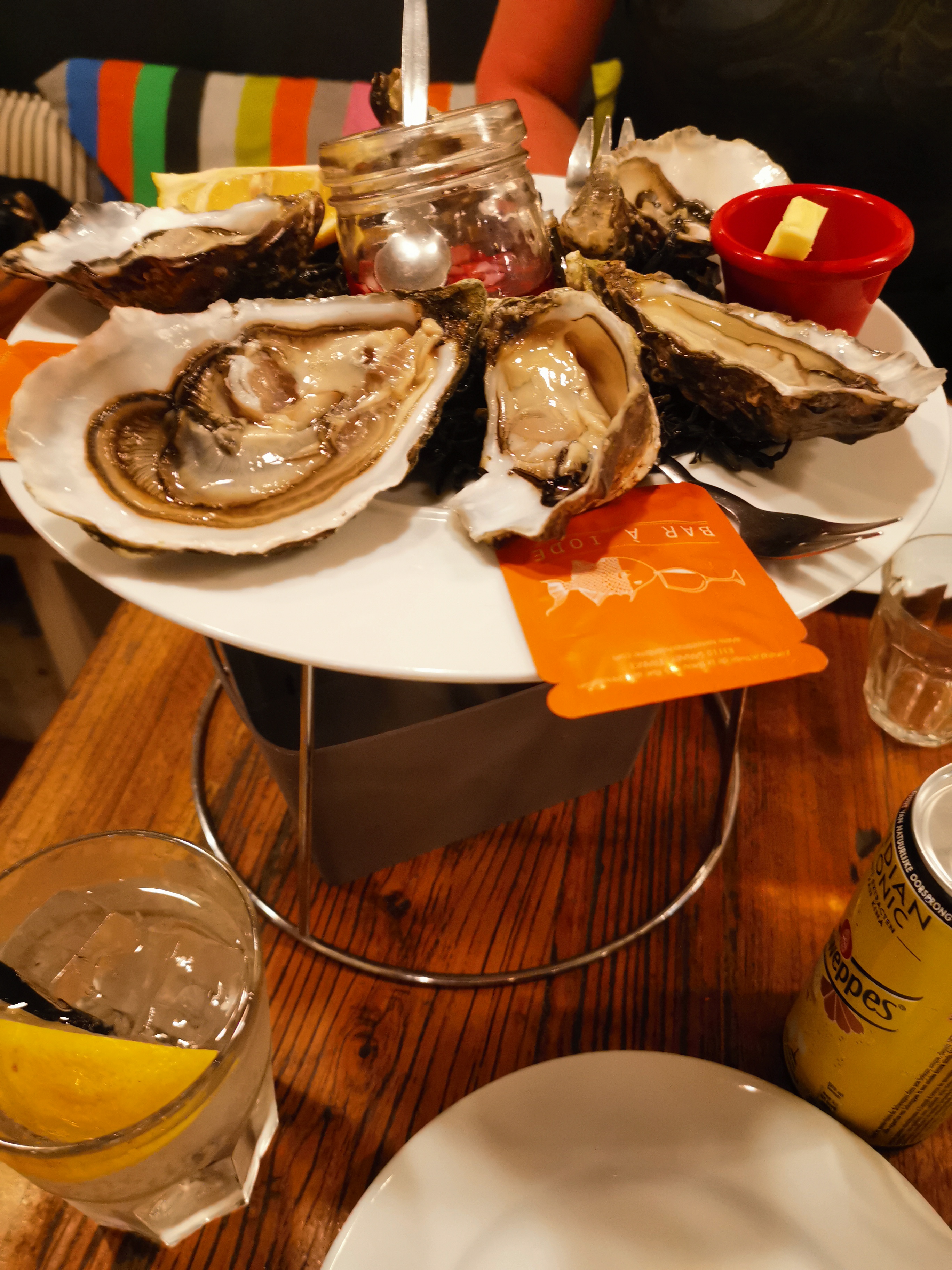 Huître fraîche mais pas froide... et patron de mauvaise foi qui tente de nous expliquer que c’est ainsi qu’il faut déguster des huîtres avant de faire l’aveu qu’il n’a pas la place de stocker de la glace pour servir les huîtres dessus... ce qui les rend tiède et ne garantie pas la fraîcheur lorsque l’on a un grand plateau de la mer à table... c’est tout simplement un repair à bobos et touristes... tout est concept, les chaises non confortable en mode cagette... mais bon en dehors du concept dans un restaurant on veut quand même être confortable et bien manger alors arrêter tous (les restos a concept) avec vos idées originales...