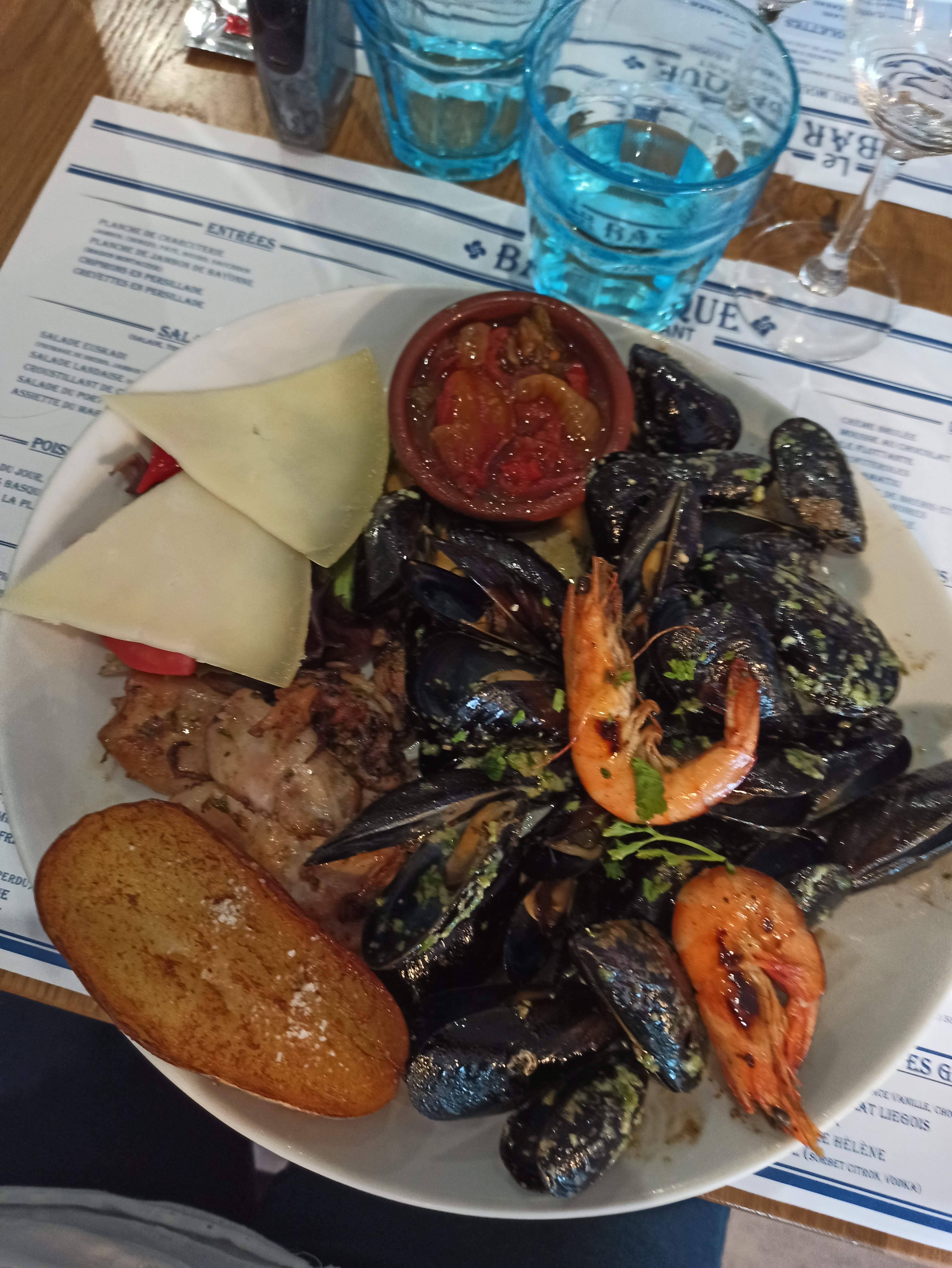 Déjeuner sur la terrasse au soleil, c’était le bonheur. On a pris les moules basquaises et les moules à la plancha. Ça avait beaucoup de goût. Le staff se soucie réellement des clients. Je recommande.