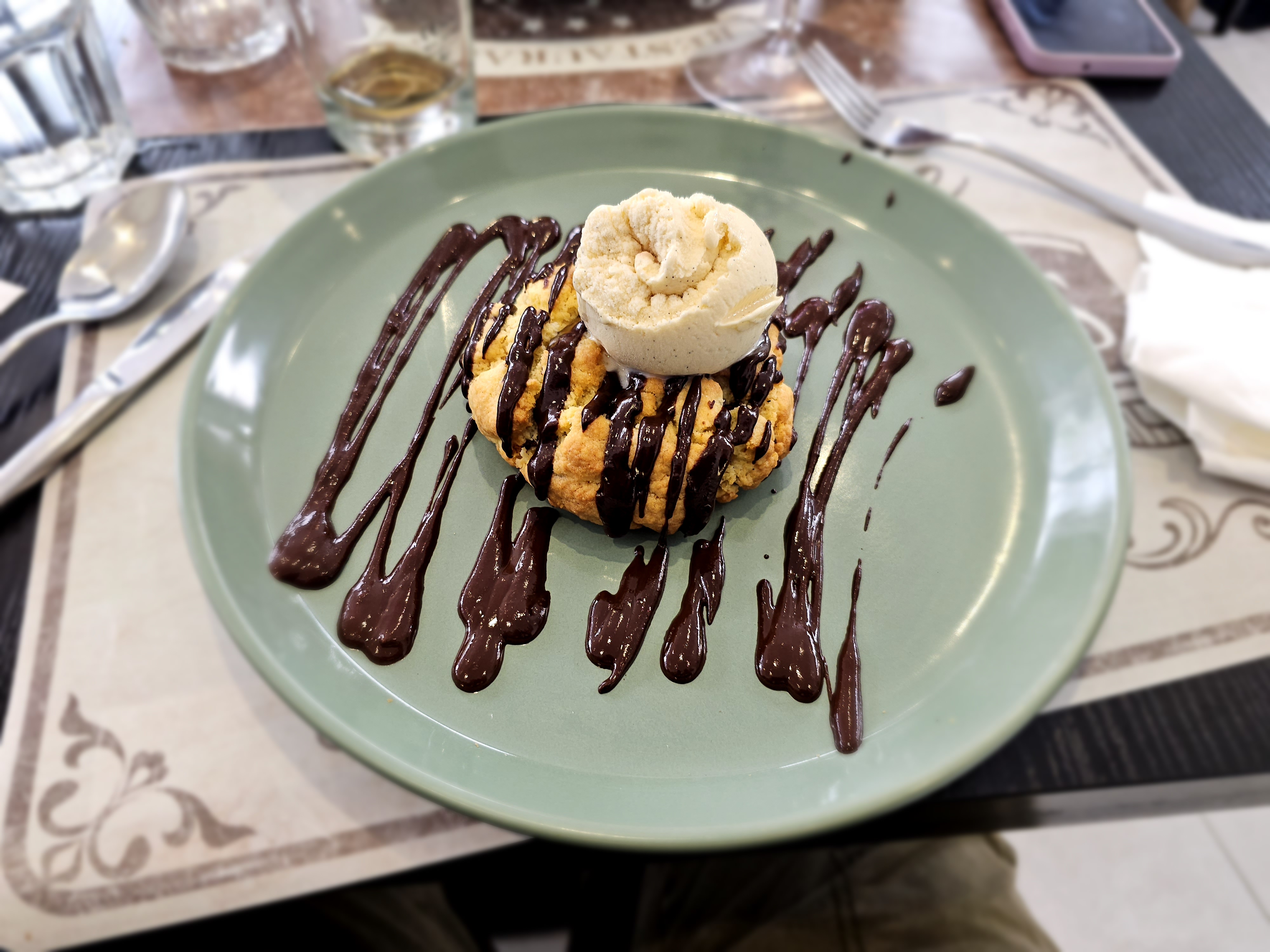 Nous nous sommes arrêtés dans cette brasserie attirés par les tables extérieures par une magnifique journée ensoleillée. Les croque monsieur que nous avons commandés étaient délicieux et les frites qui les accompagnaient encore meilleures. Nous avons également aimé les desserts. Portions généreuses et prix moyens (nous n'avons pas trouvé de différences particulières avec l'Italie).