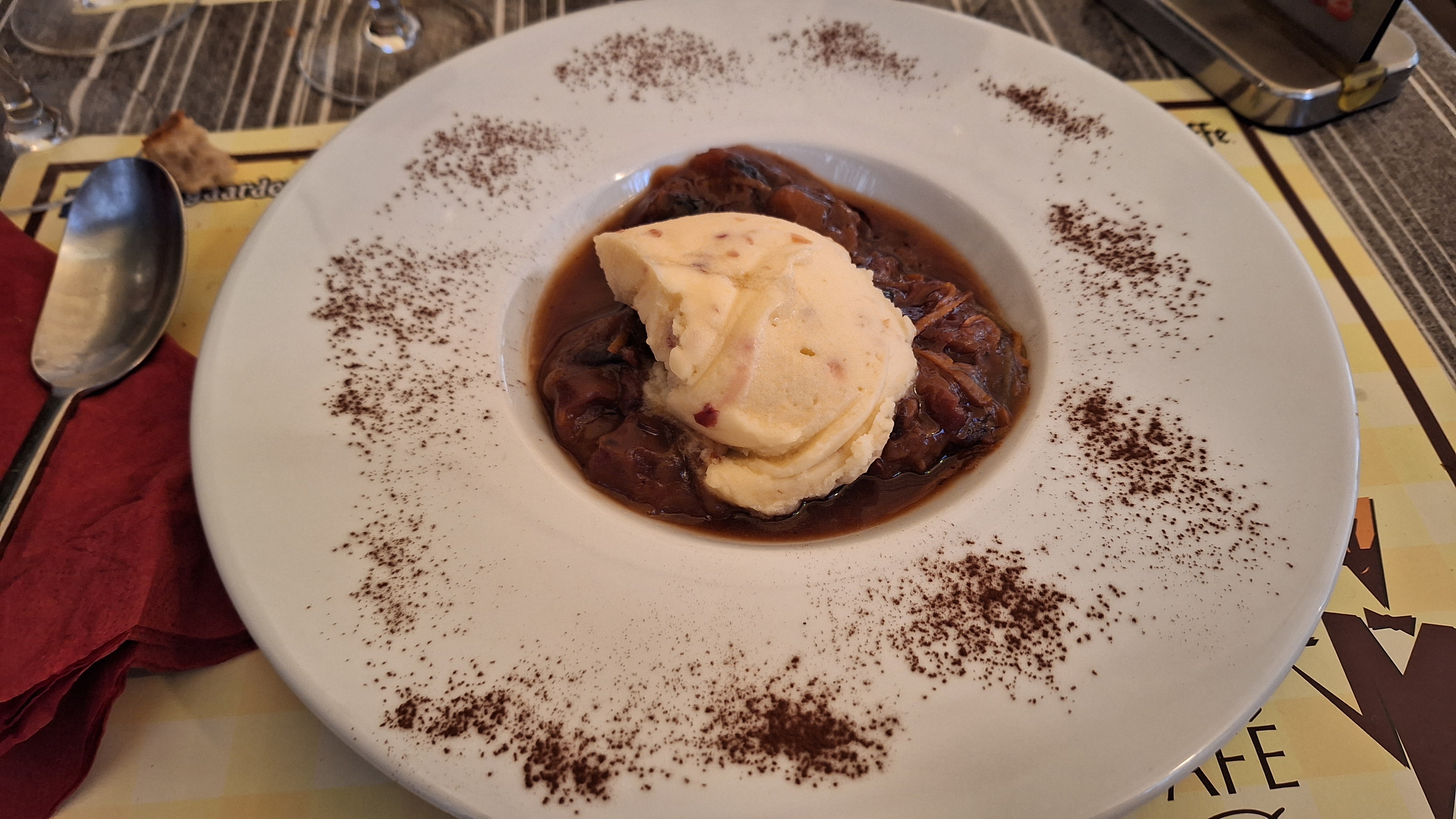 Très bien mangé copieux patron et serveur au petit soin chaleureux.. sommes de la rochelle...dommage trop loin ...Pour revenir régulièrement car plusieurs choix nous faisaient envie... salade perigourdine magret cuit bleu comme nous l avons demandé ...souris d agneau purée à la truffes ...pêches confites tiède et ça glace ..mousse au chocolat...🤤🤤🤤🤤