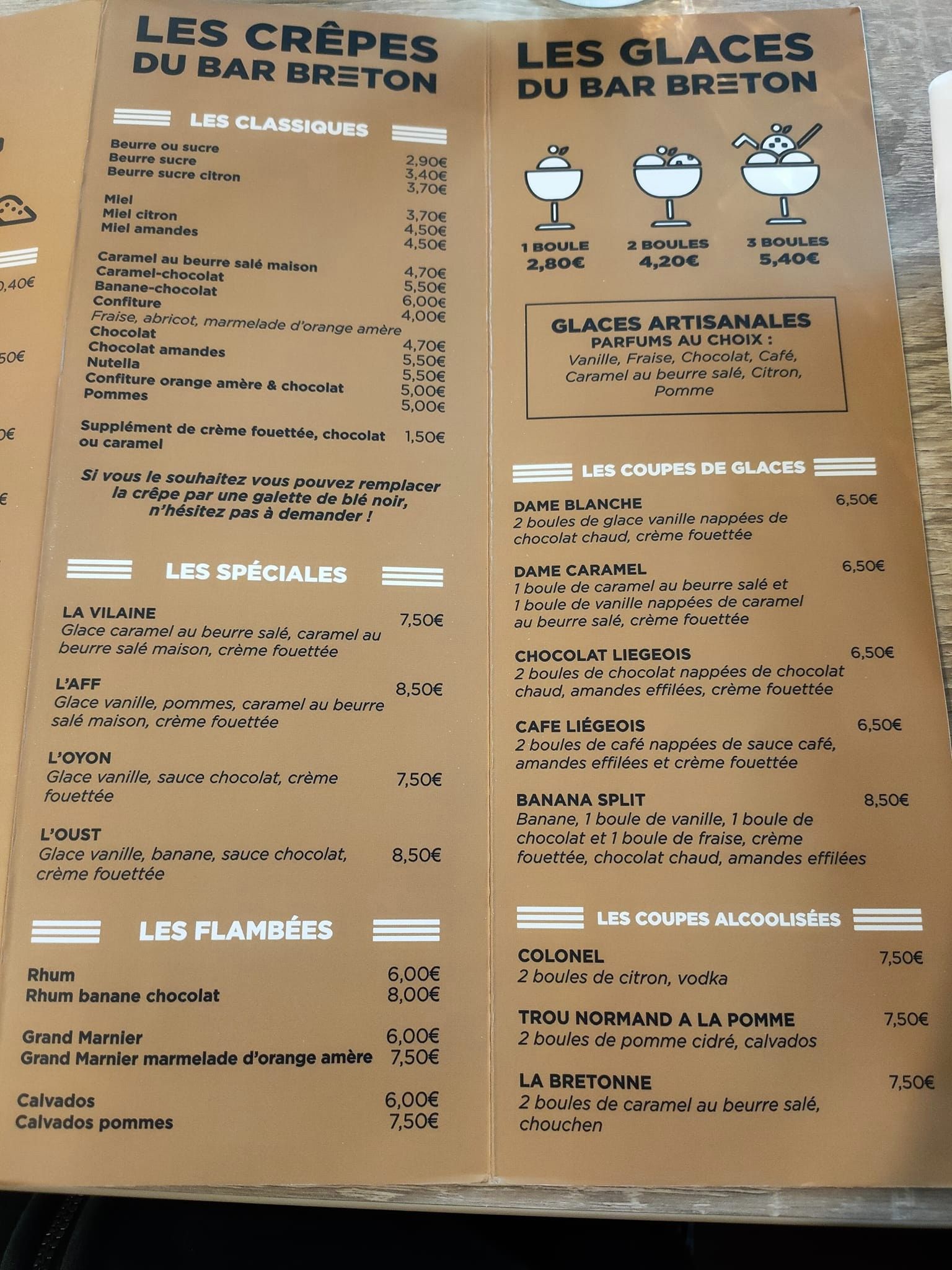 Patron très serviable, tres bon accueil et les galettes sont très bonne et fait maison ,surtout la galette au caramel, a recommandé