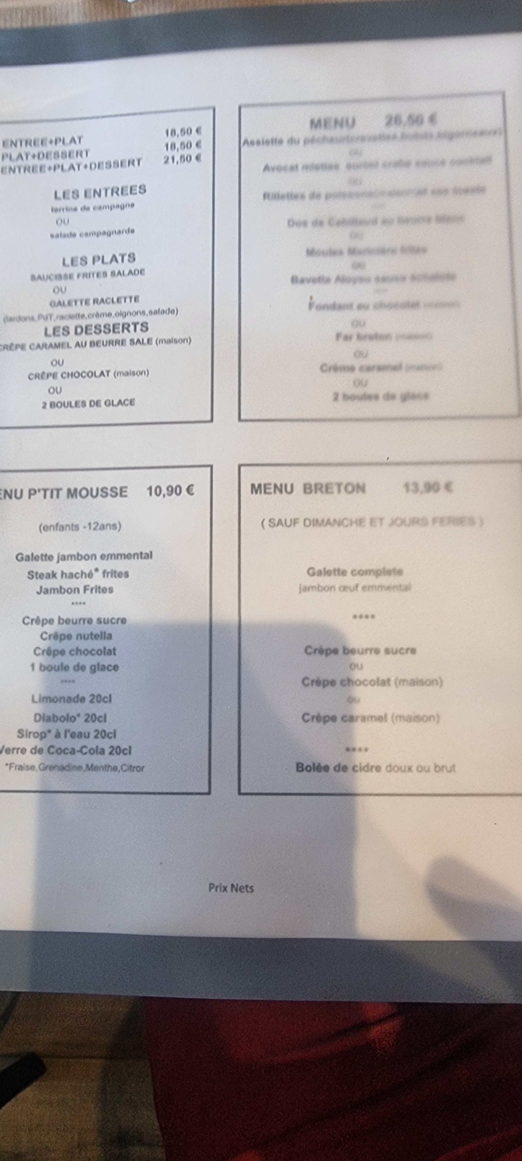 Prix attractifs. Serveurs sympas. Par contre ils ont oublier les plats des menus enfants. Du coup nos filles ont attendu presque 1h. Toutes les autres tables ont été servi avant la notre. Dans le menu adulte, les crevettes, bulots et bigorneaux n'étaient pas de la meilleur qualité et du meilleur goût. Dommage pour un bord de mer. Les moules à la crème sont très lourdes et difficile à digérer.