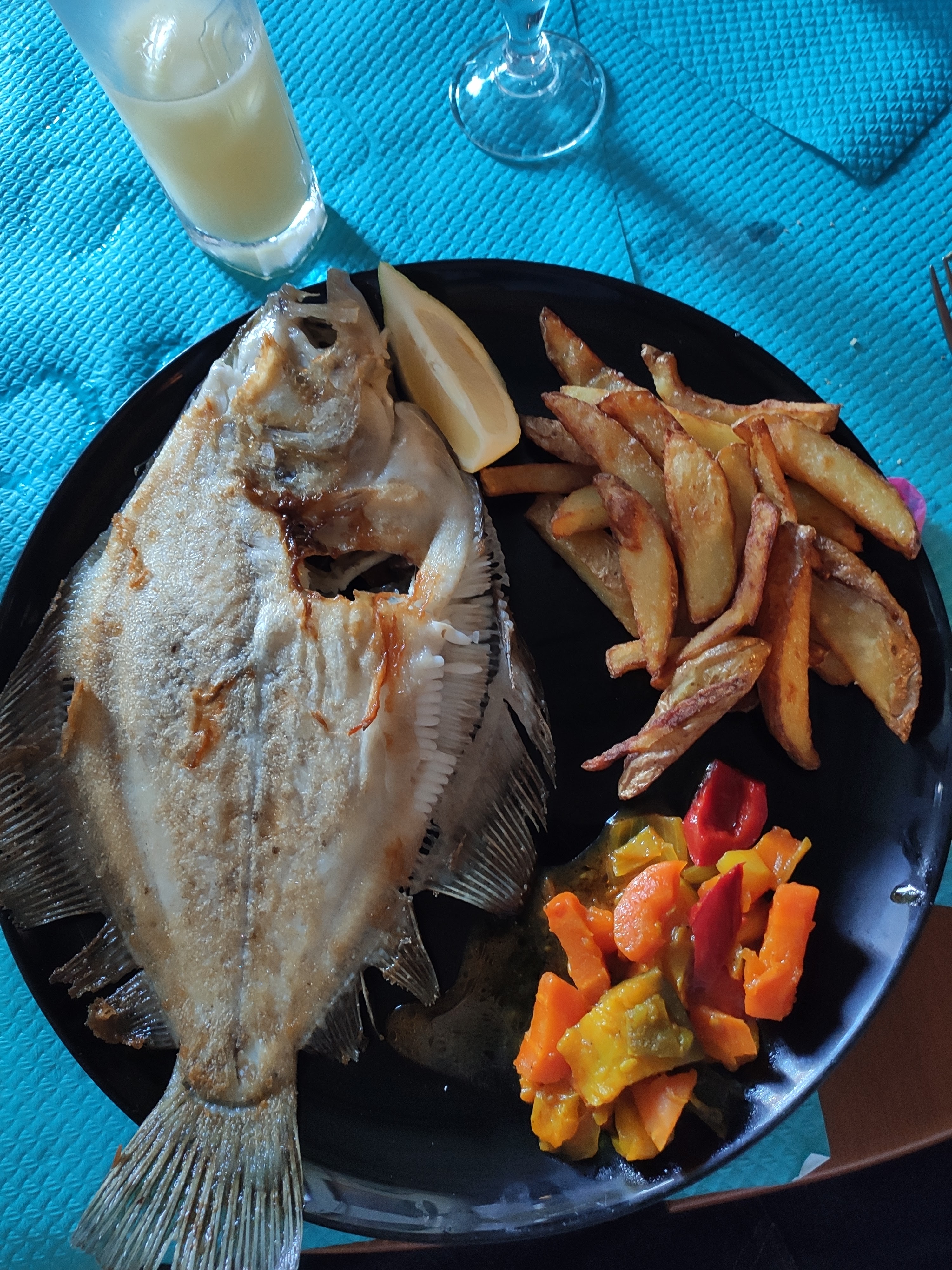 Restaurant atypique où l'on vous reçoit comme à la maison. Poisson frais et très bon. Je suis un bon mangeur et je suis sorti repu. Je recommande vivement.