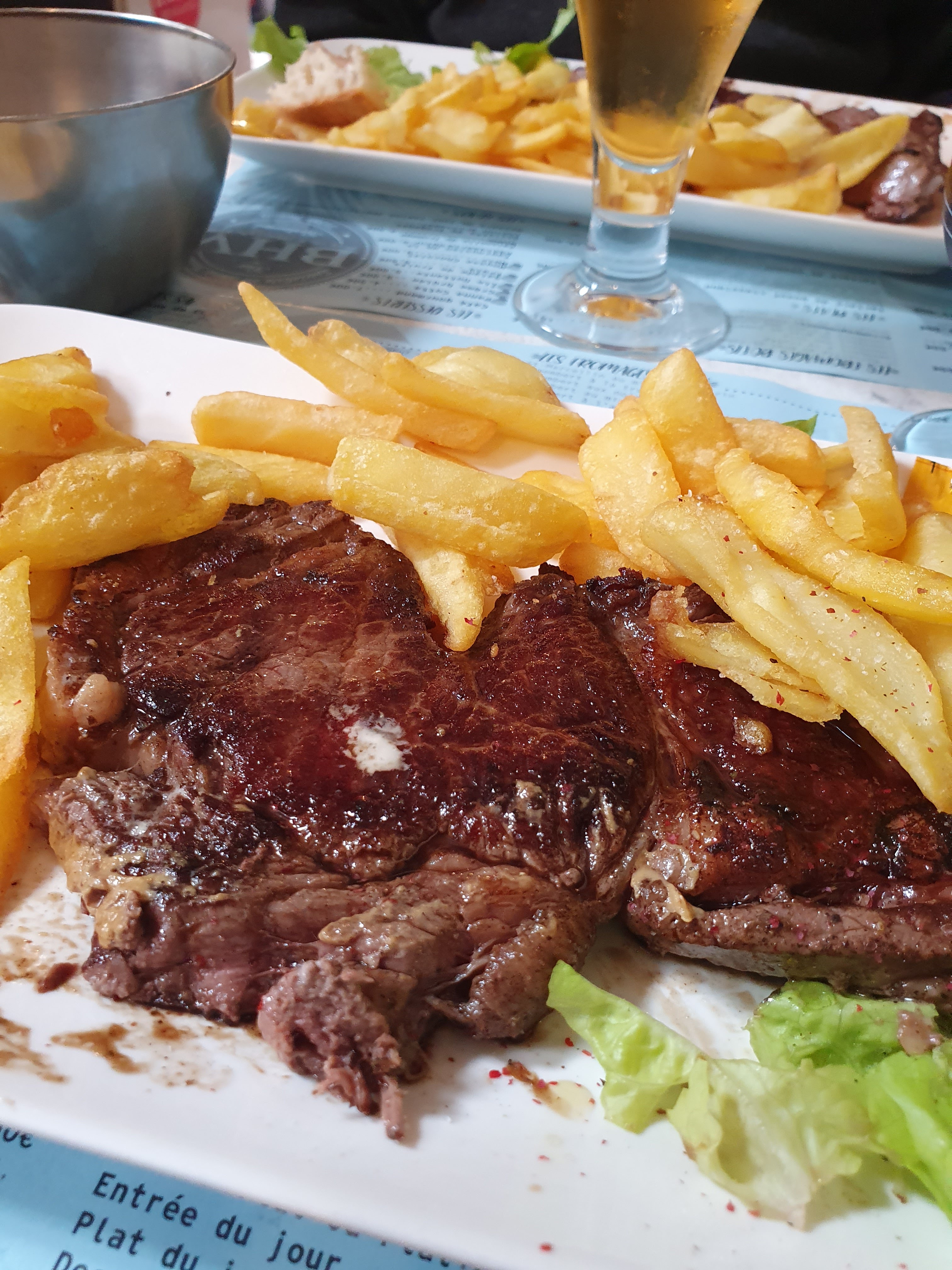 Une excellente bière Heineken à tarif très raisonnable, accompagnée d'une andouillette sauce au poivre + frites + salade. Andouillette bien cuisinée et servie dans un plat très chaud (important). On est bien sous les stores rouges, on se croirait même en vacances. Je recommande ce petit moment de plaisir.
