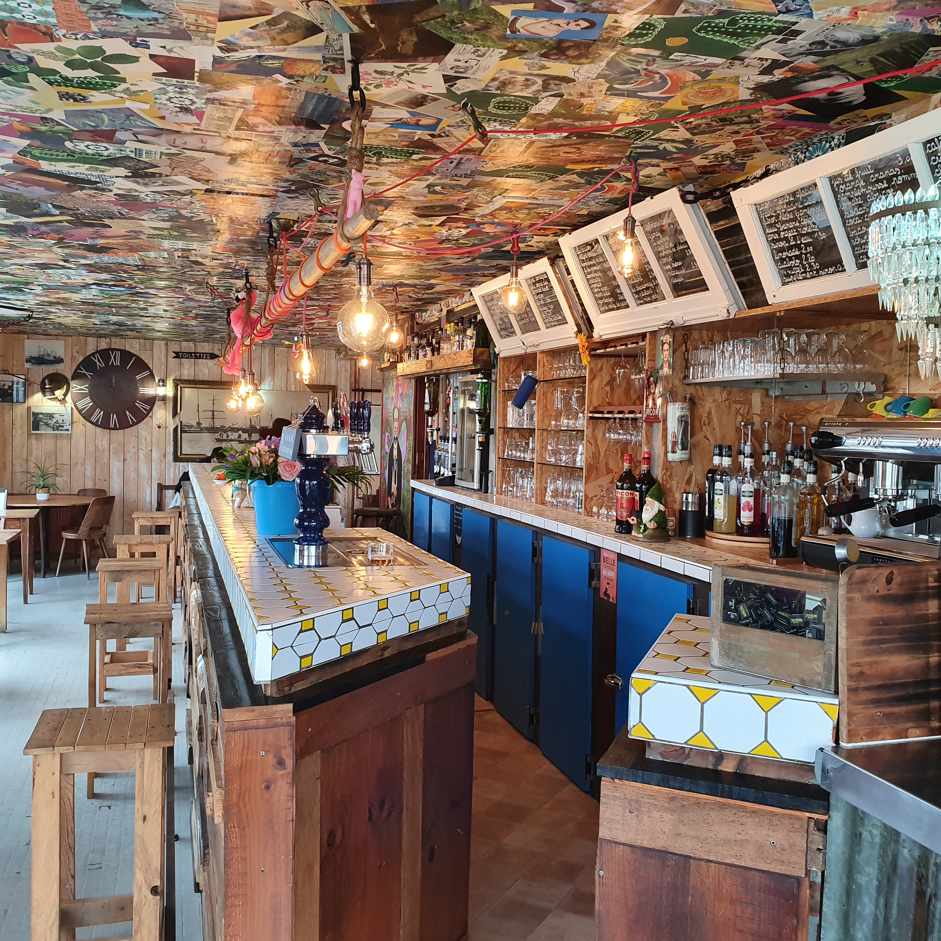 Bar au top ! Une décoration superbe et originale , un bar à ne pas manquer ! Le service au top , et la cuisine simple mais délicieuse , mon plat préféré les moules pendant l’été qui viennent du coin et encore meilleure avec leur sauce maison ! Je recommande a 1000%