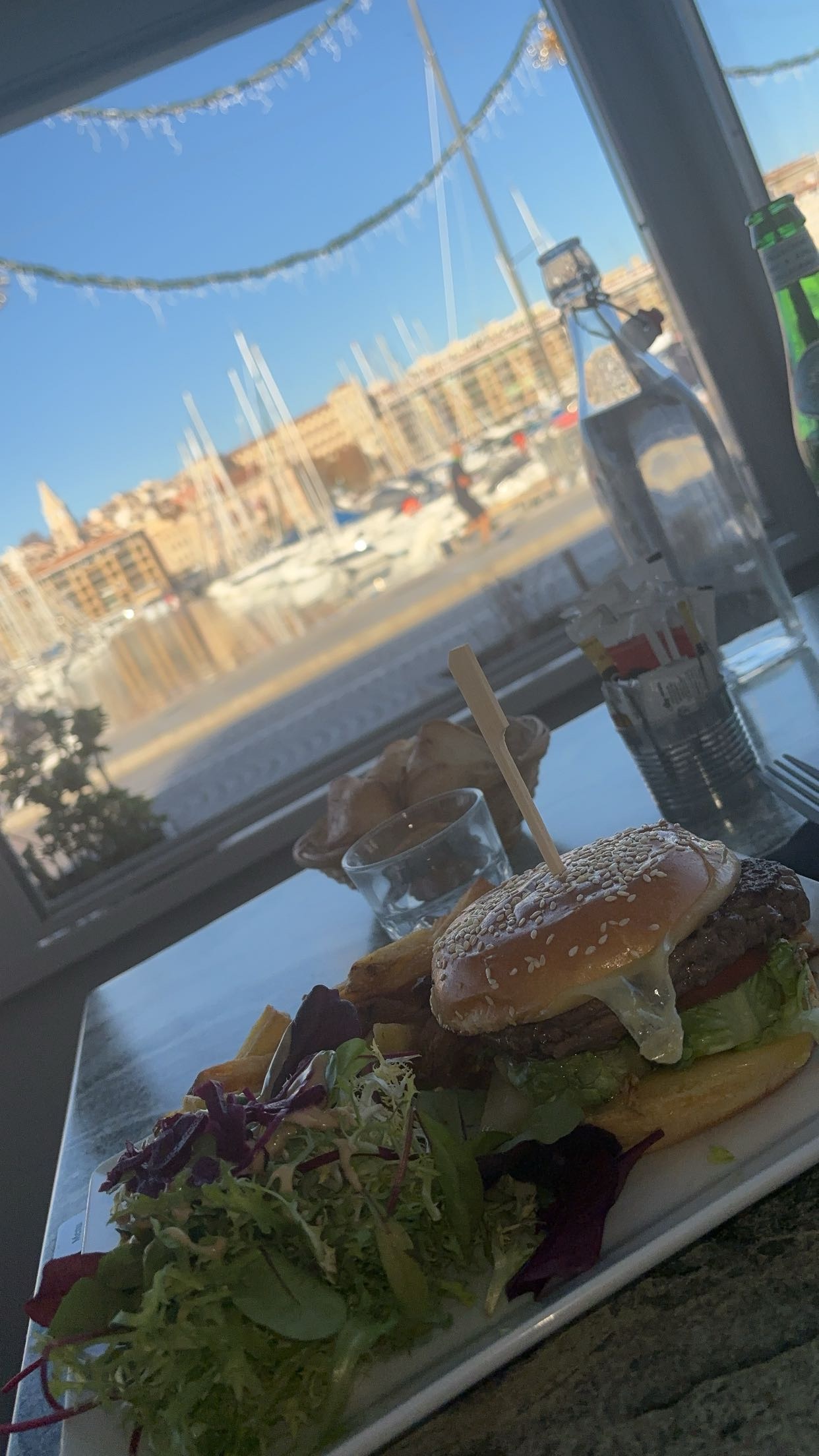 Un moment agréable sur le port du vieux port j’ai choisi l’hamburger du chef avec des frites maison, il était très bon le serveur très gentil, une ambiance chaleureuse et marseillaise comme on adore je recommande les yeux fermés. Niveau prix, très abordable 🤍
