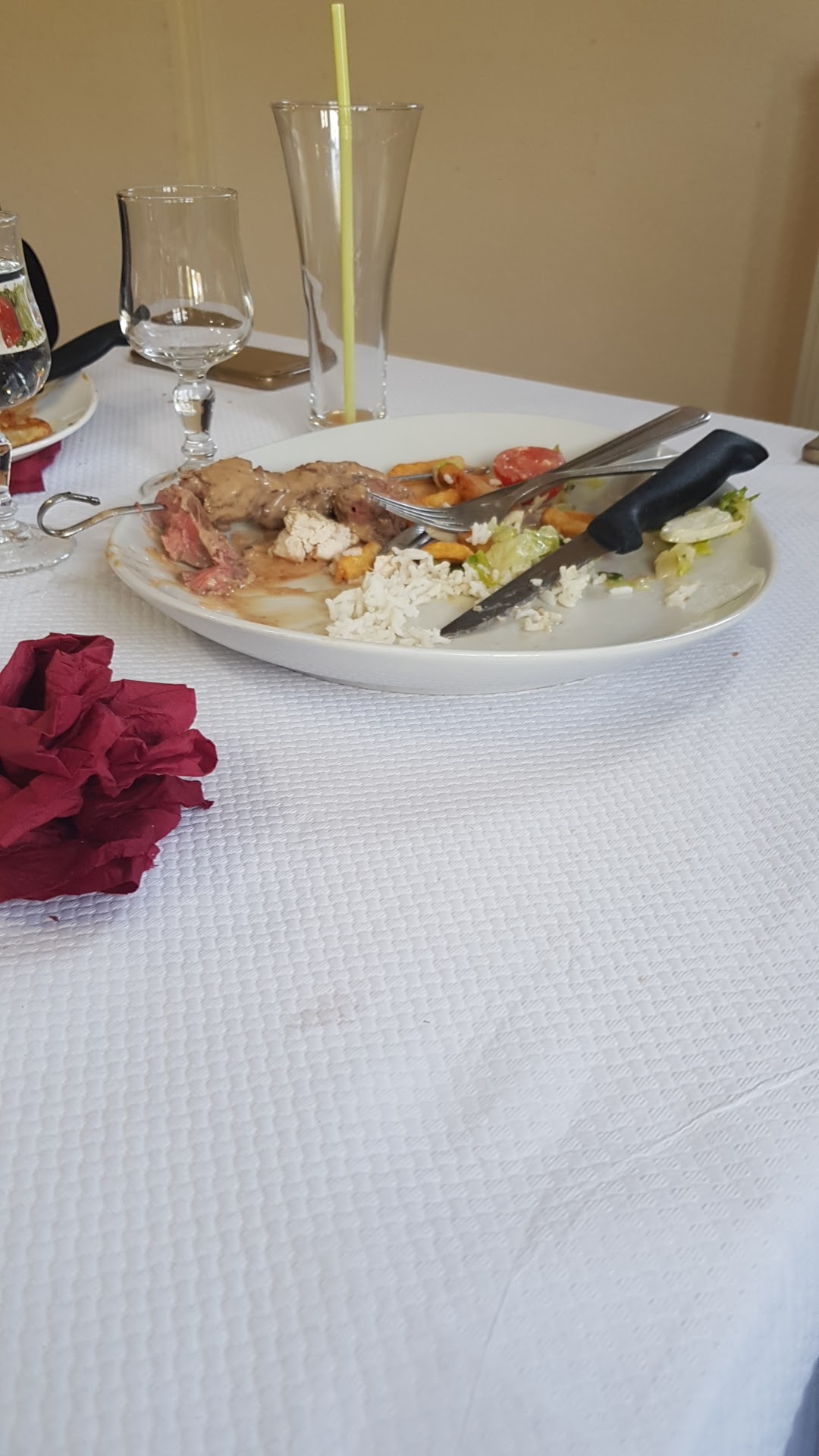 Arrivés dans un restaurant presque vide à 21h30, on nous précise et d’une qu’il n’y a plus de fruits de mer et de 2 nous pouvons nous installer si nous mangeons en 1h top chrono, ce que nous acceptons et respectons. Accueil par un serveur sympathique ce que je ne dirai pas de sa responsable. Plats moyens, nous avons dû réclamer le pain que nous avons été cherchés auprès du serveur et une carafe d’eau dont nous avons dû nous passer car jamais servie! Bref bien en dépannage mais sans plus, nous ne sommes sans doute pas tombés le bon jour.