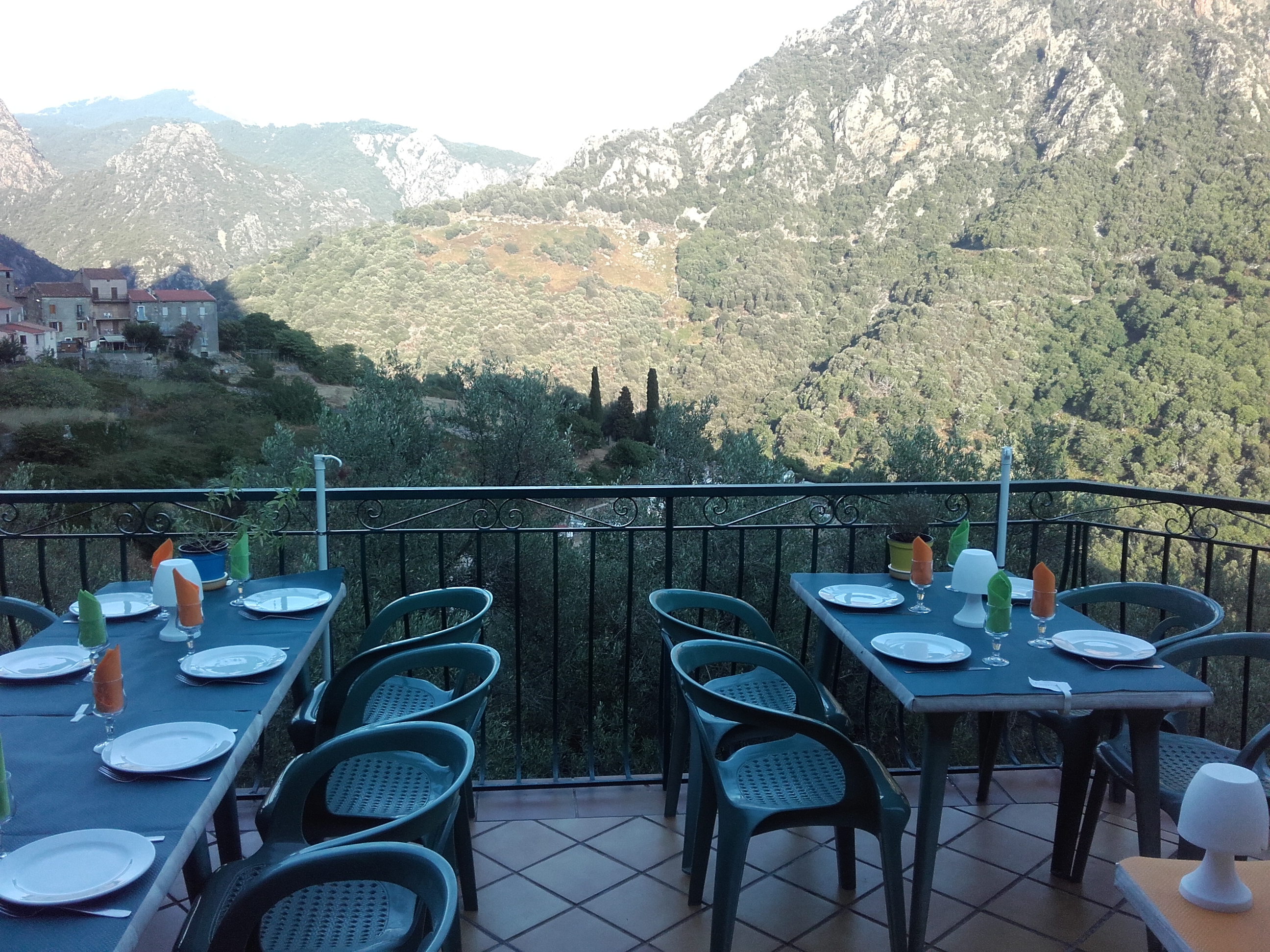 Chez Marie c'est comme a la maison dans une ambiance familiale vous dégusterez une cuisine corse preparée sur place avec produits locaux avec une vue magnifique sur la montagne et la vallée