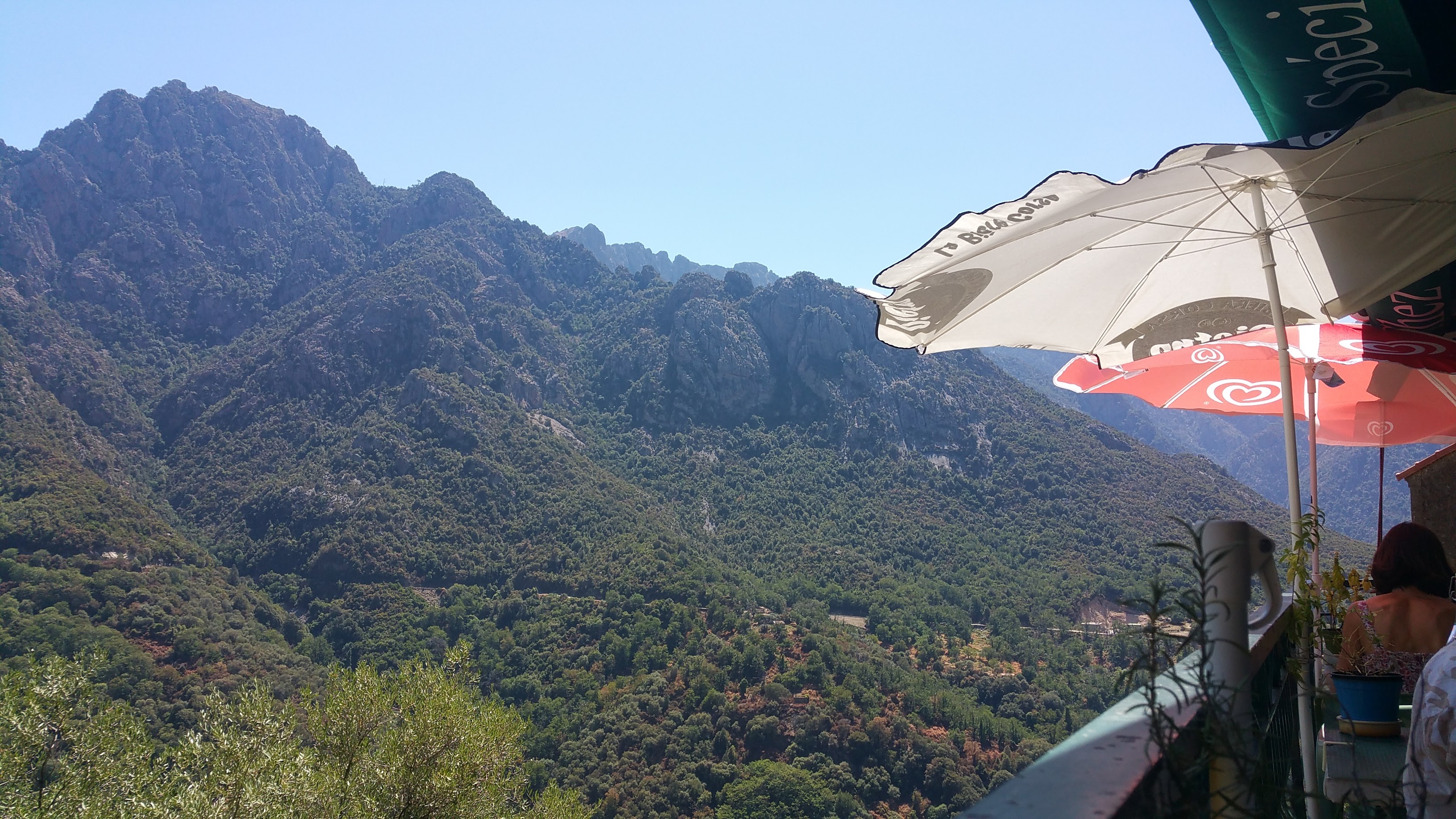 typiquement corse Une carte bien régionale, Nous y sommes retournés plusieurs fois pour goûter différents plats, tous excellents. Un accueil des plus sympathiques et une terrasse avec une vue exceptionnelle sur la montagne