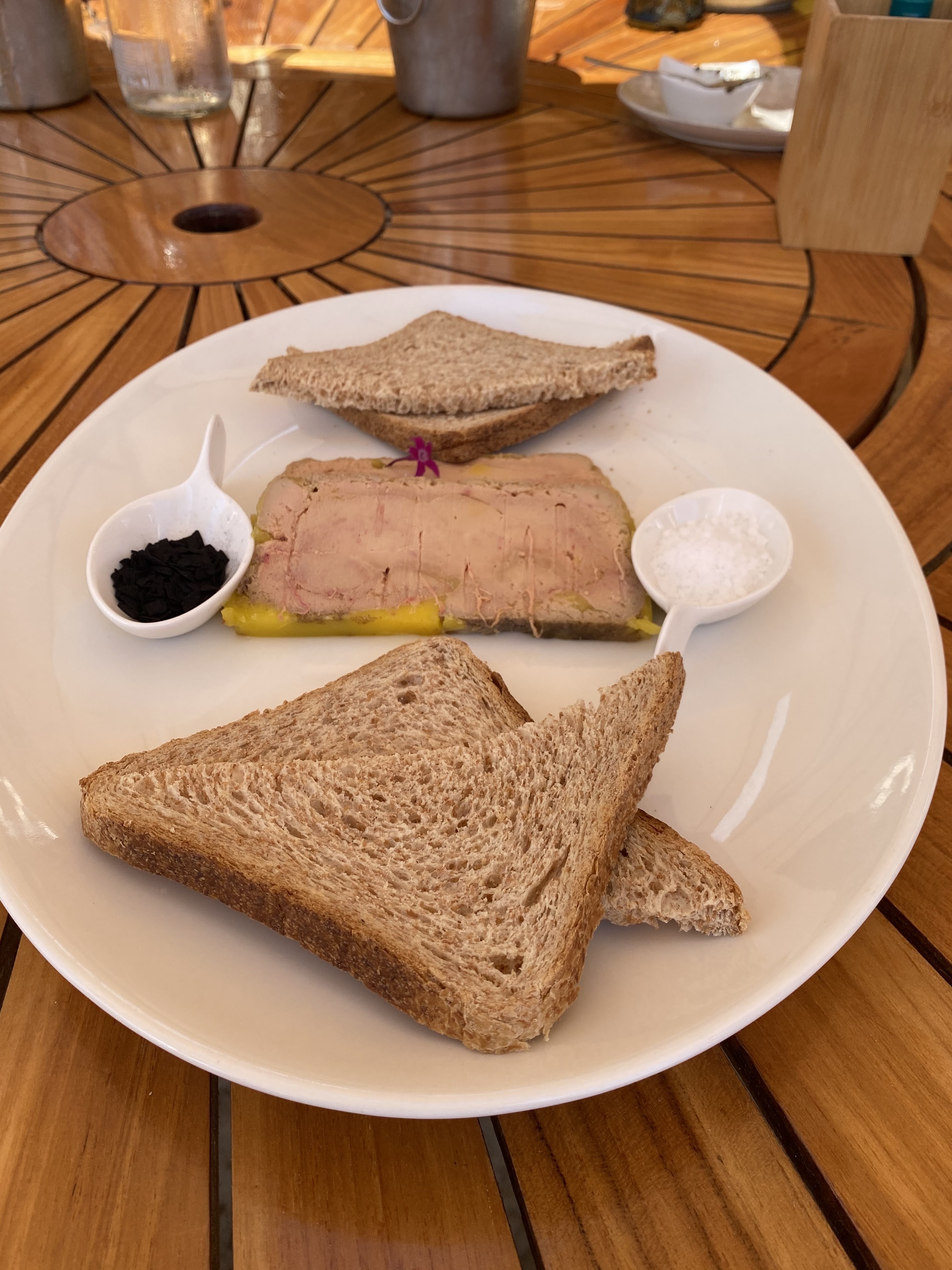 Nous avons juste profité de l’espace lounge sur la plage pour boire une boisson dans la matinée. Lieu décoré avec goût et élégance, fauteuils très confortables et vue imprenable sur la mer. Très beau bar de plage🤩 service top