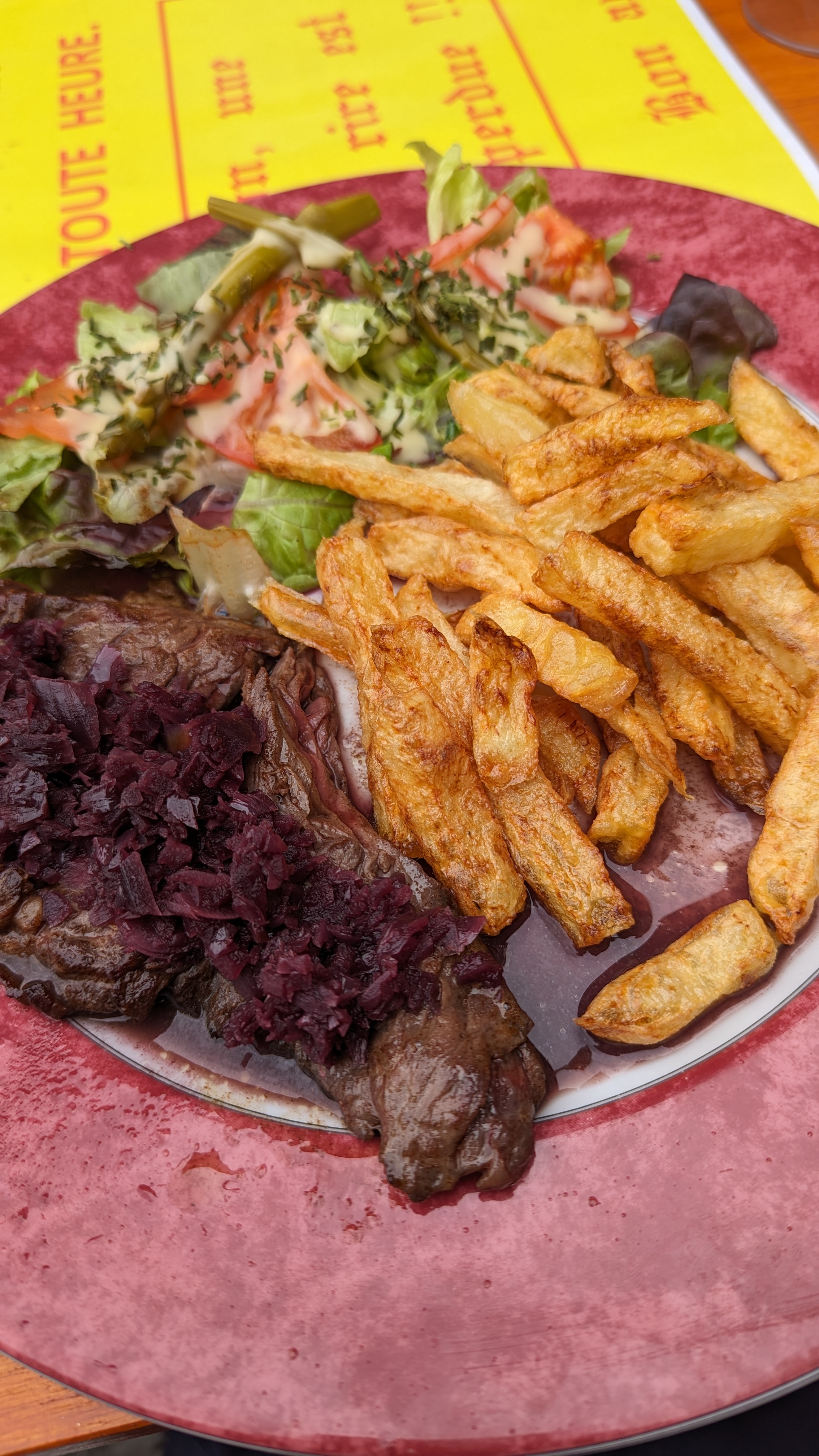 Accueil impeccable, j’ai commander entrecôte race limousine frites salade ainsi que le dessert inclus pour 19 euros il n’y a rien à dire à refaire