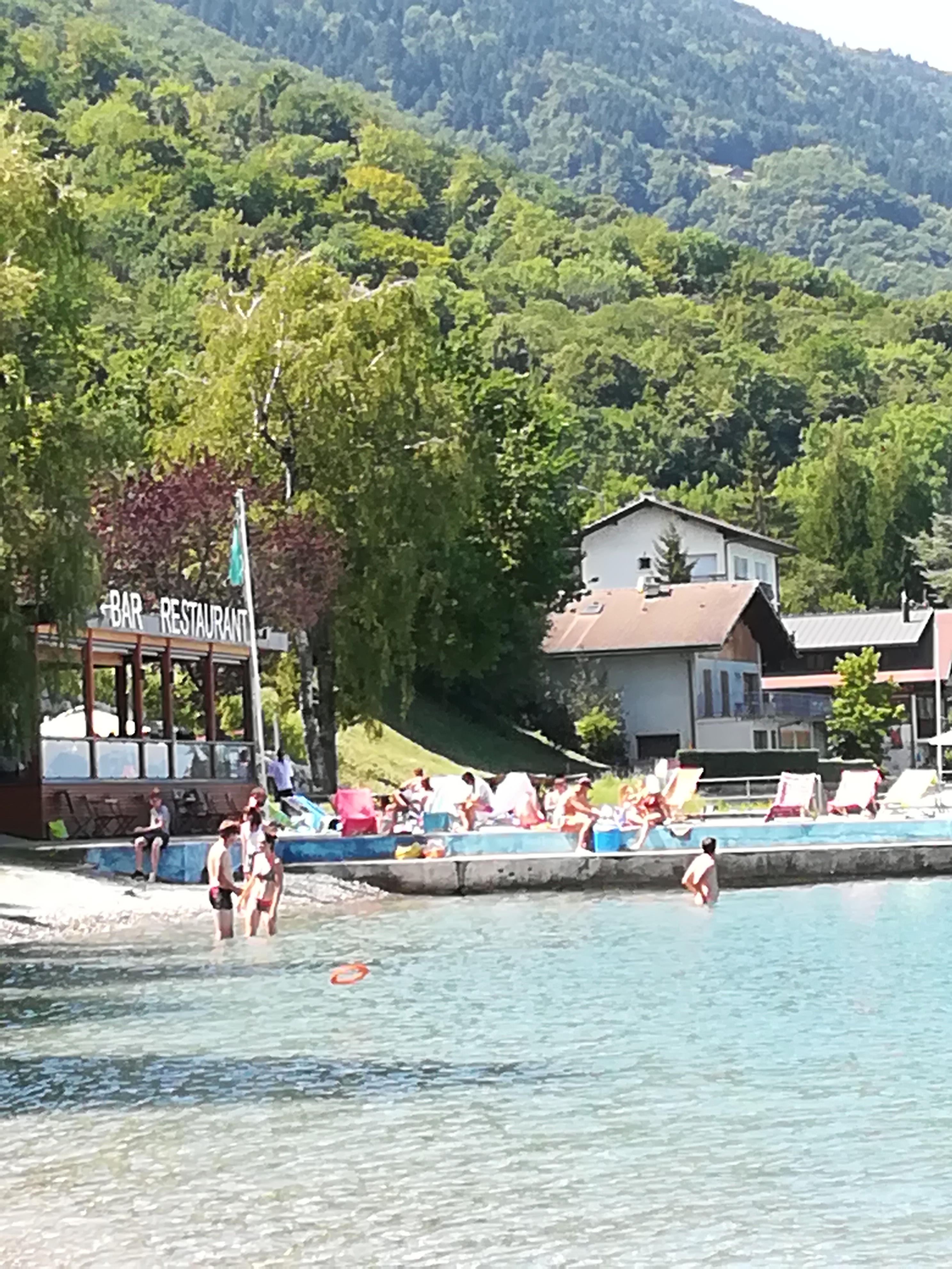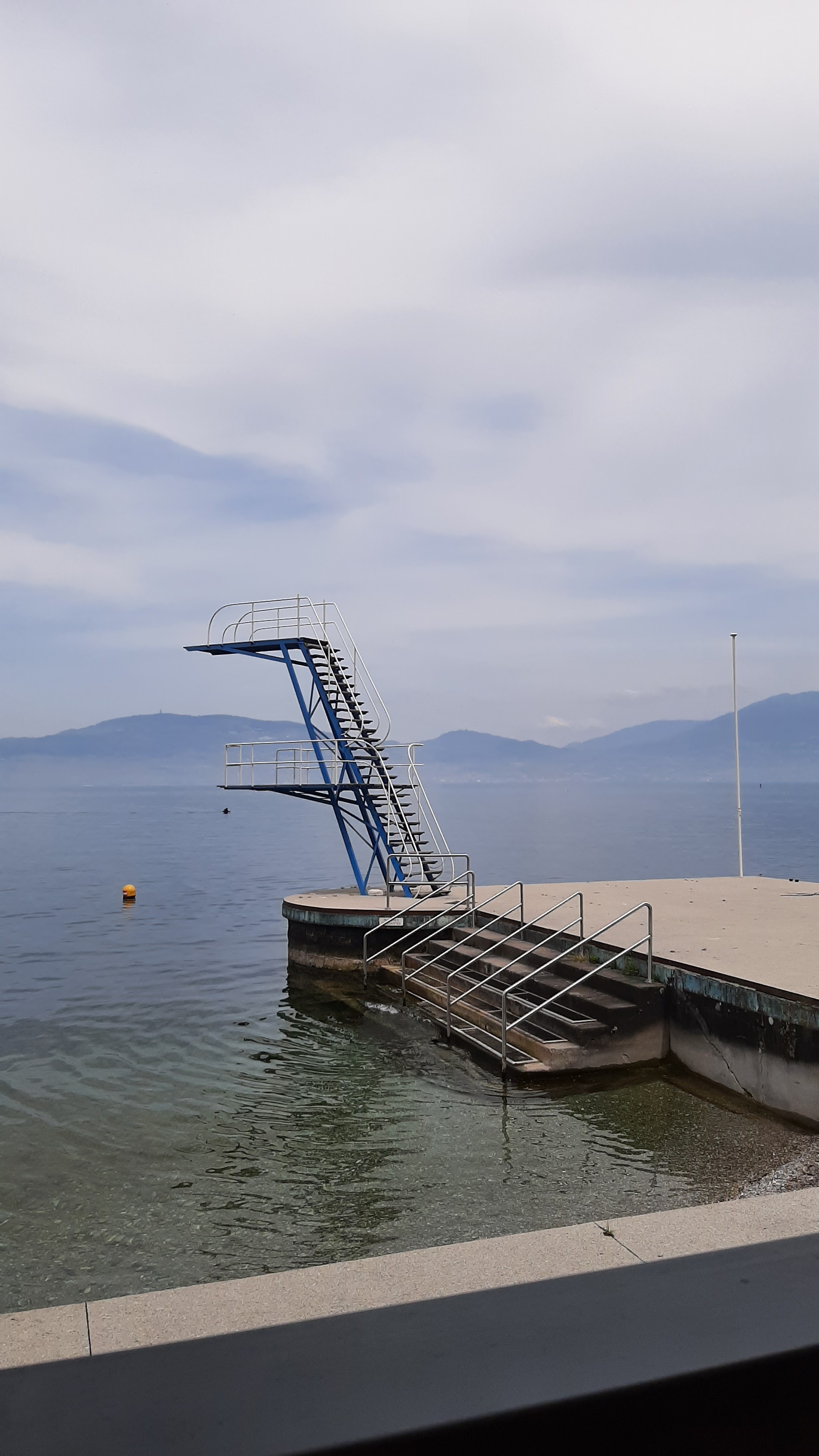 Plage de petits galets, plongeoir, bar et terrasse couverte juste parfait 👌🇨🇭❤🌞🚣♀️🏊♂️