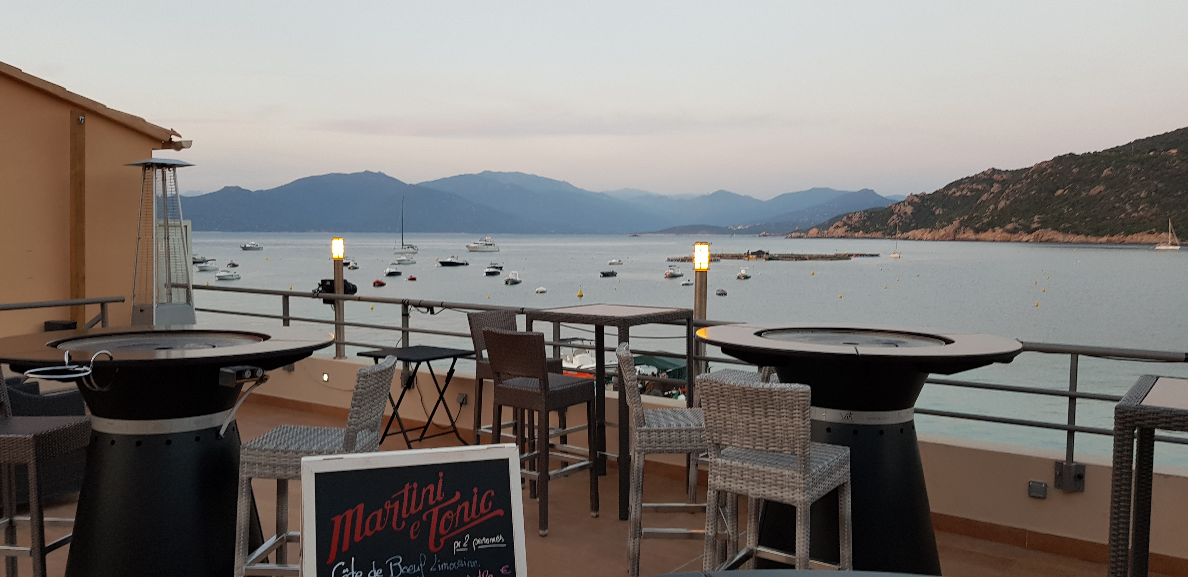 restaurant avec une superbe vue sur le golf de valinco, sur le port et la plage de campomoro.personnel très serviable et rapide.poisson frais et bien cuisiné.rapport qualité prix correct.