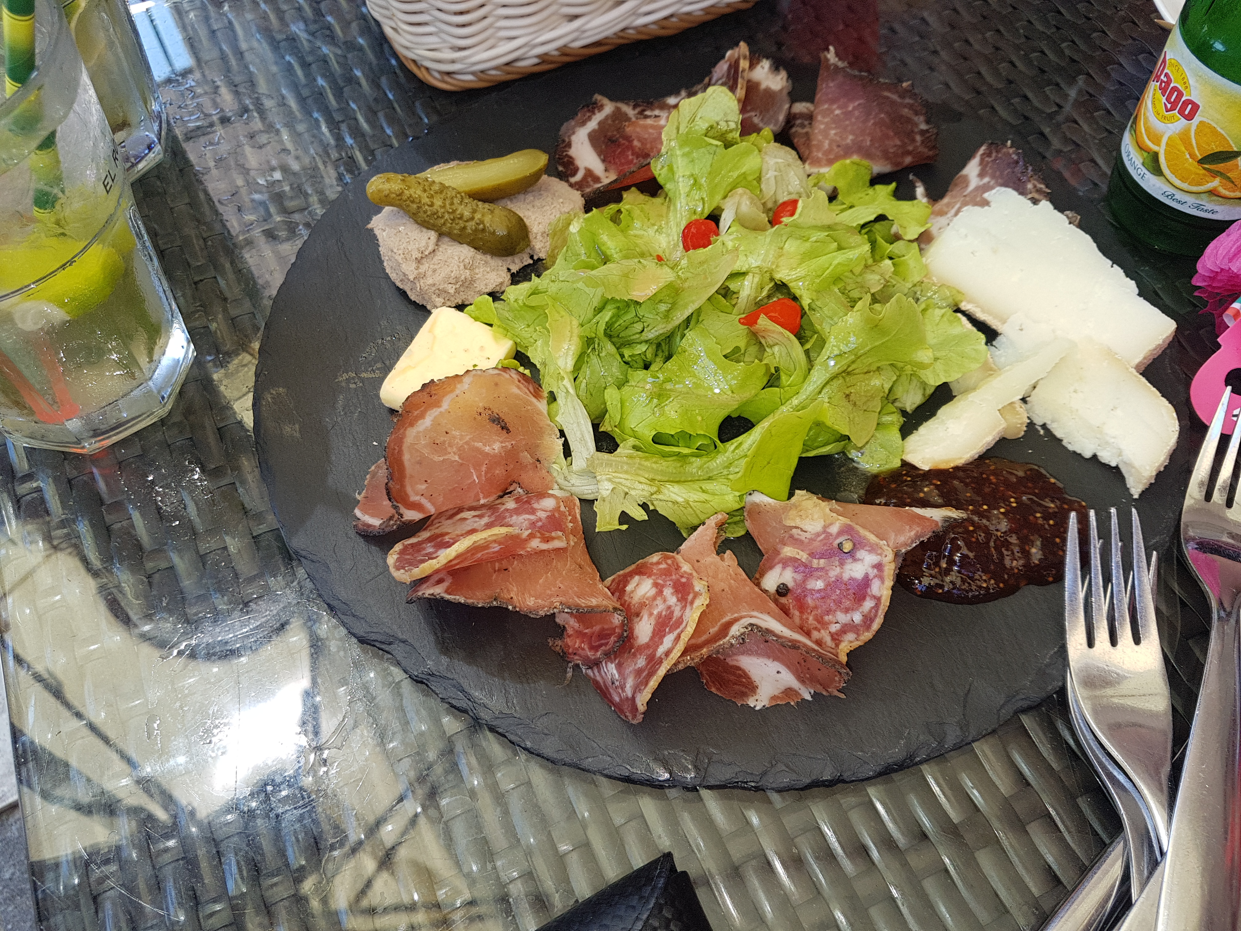 Très bien et pour finir la visite de la tour de camporo génial 😉👍moi g pris l'assiette du berger sur ardoise (charcuterie corse et fromage servi avec un peu de confiture ,trop bon)O top avec un verre de rosé je vous le recommande