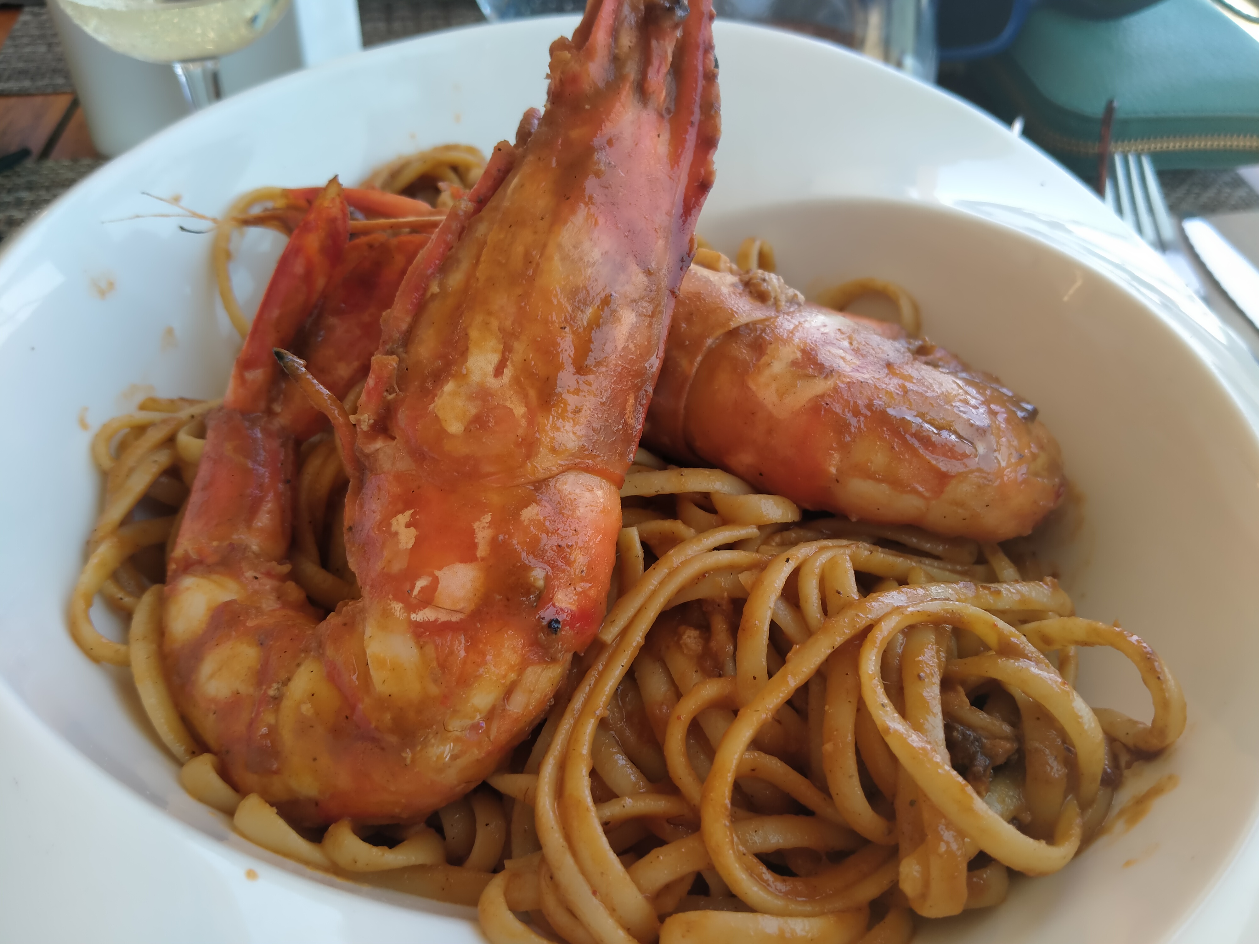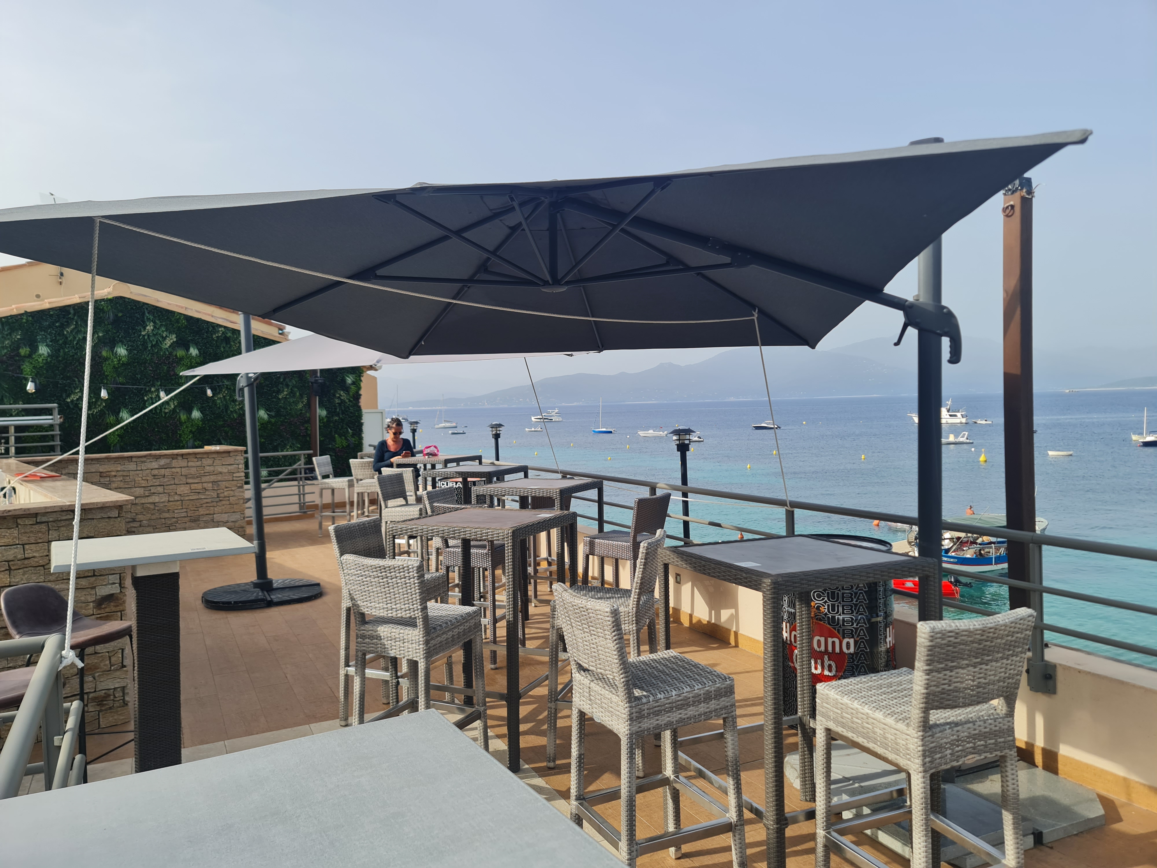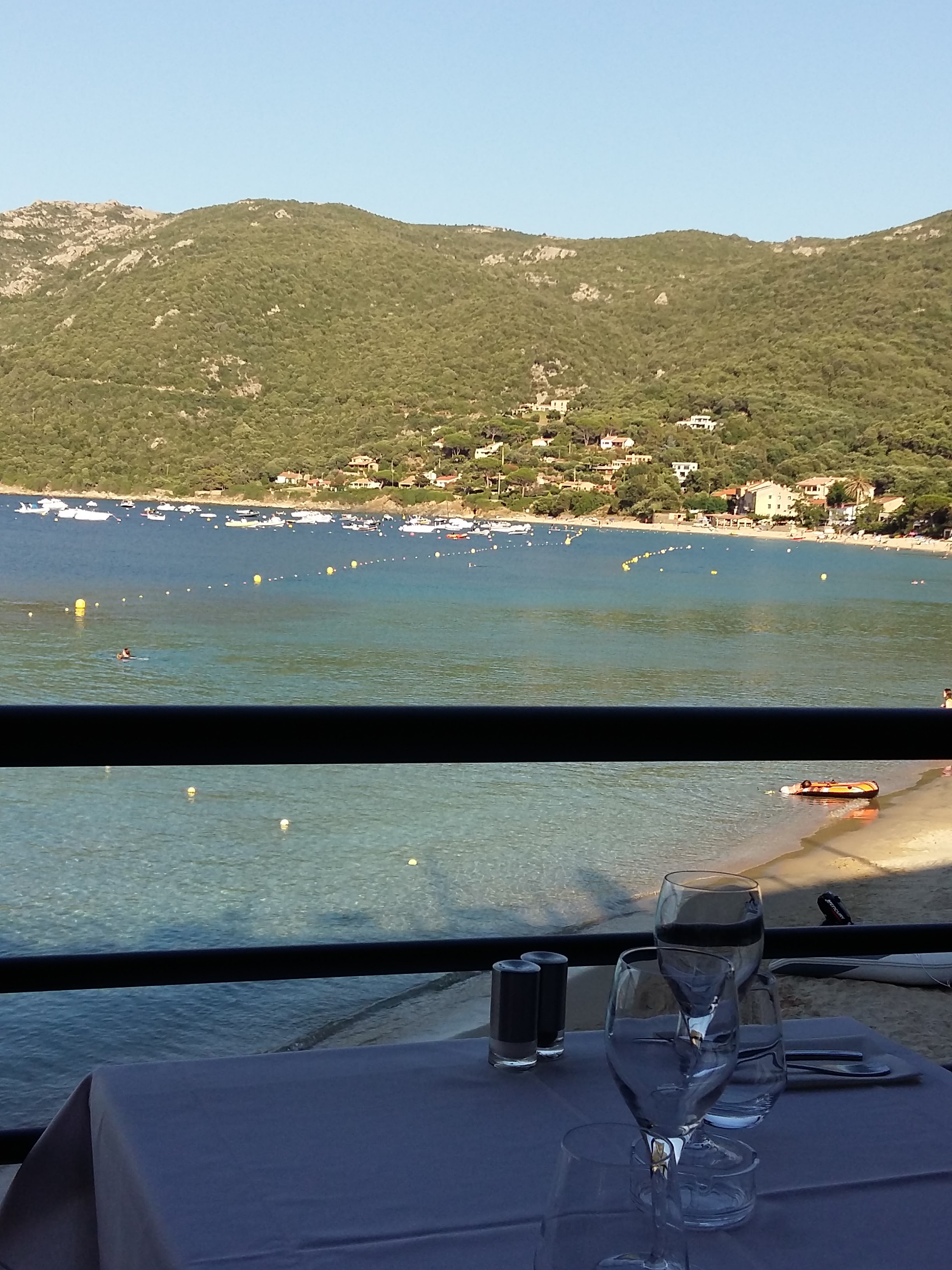 Vue sur la plage, une serveuse très attentionnée et des gambas plus que délicieuses ... après la balade autour de ta tour génoise ce fût une halte magnifique ...