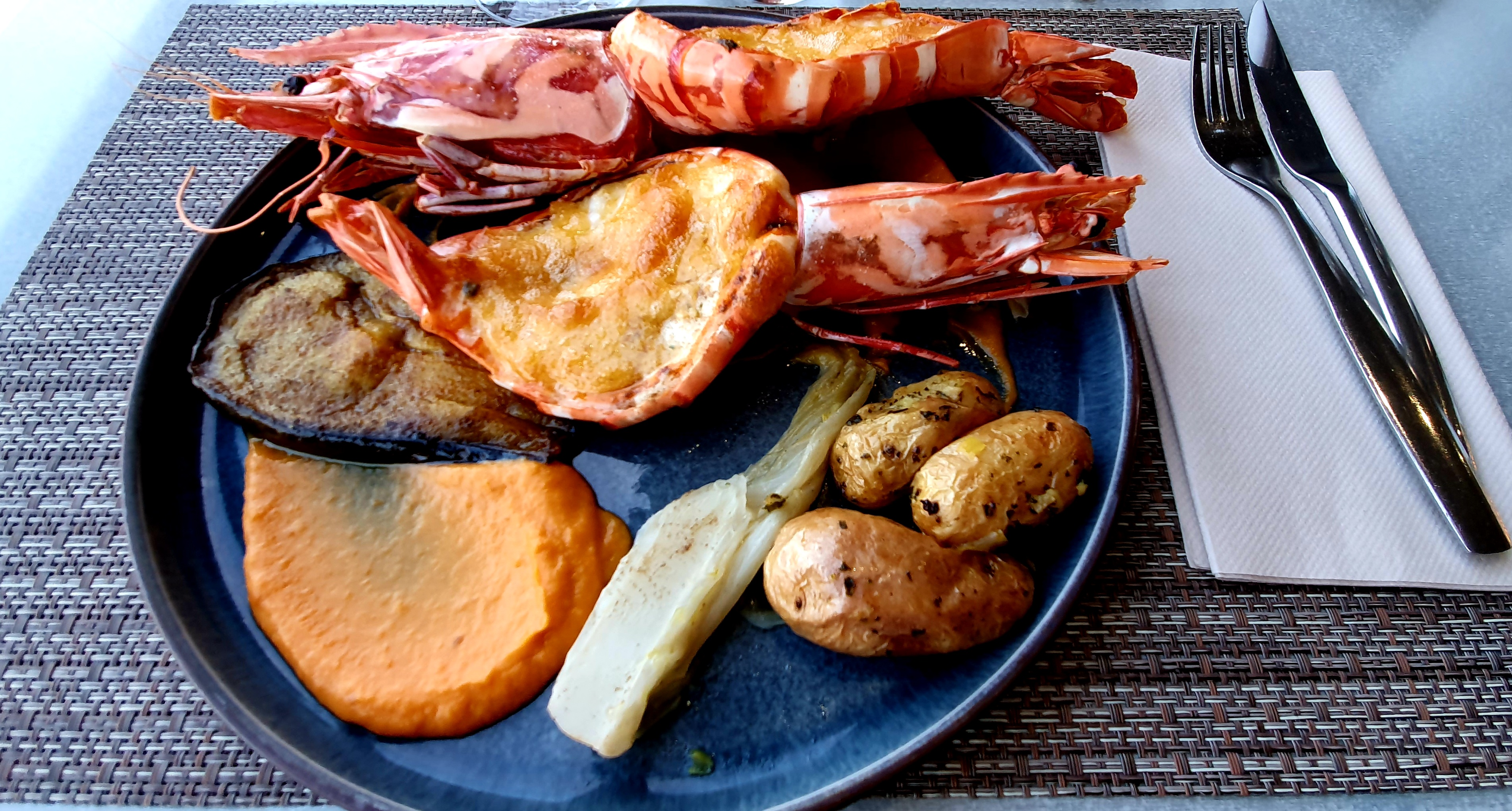 Cadre et vue très sympa mais assiette avec une maxi épaisseur de salade verte et quelques langoustines pas terribles