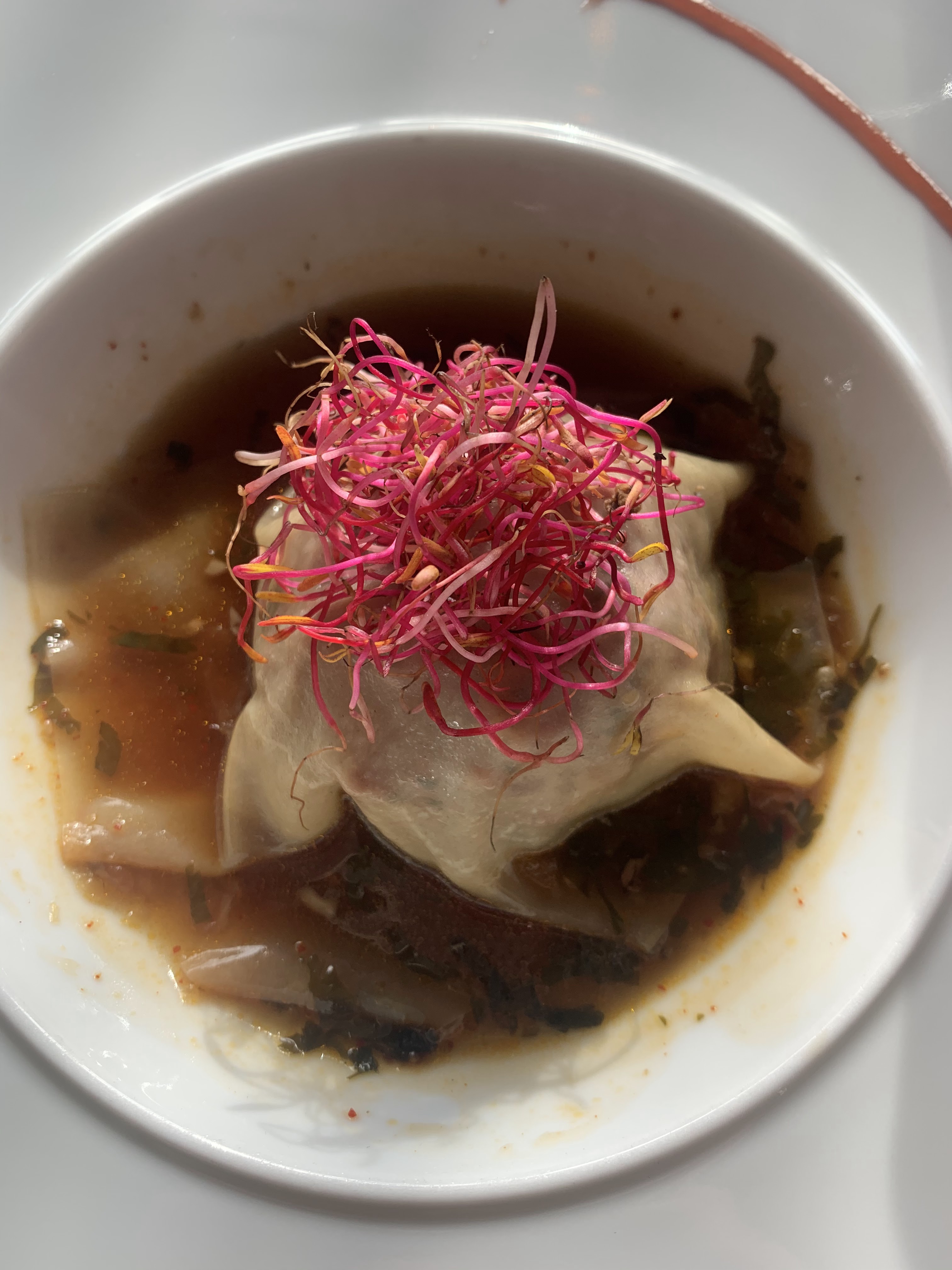 Un plaisir des yeux aussi bien pour le décor que pour les assiettes. Cuisine fine aux parfums d'ailleurs. Je recommande vivement.