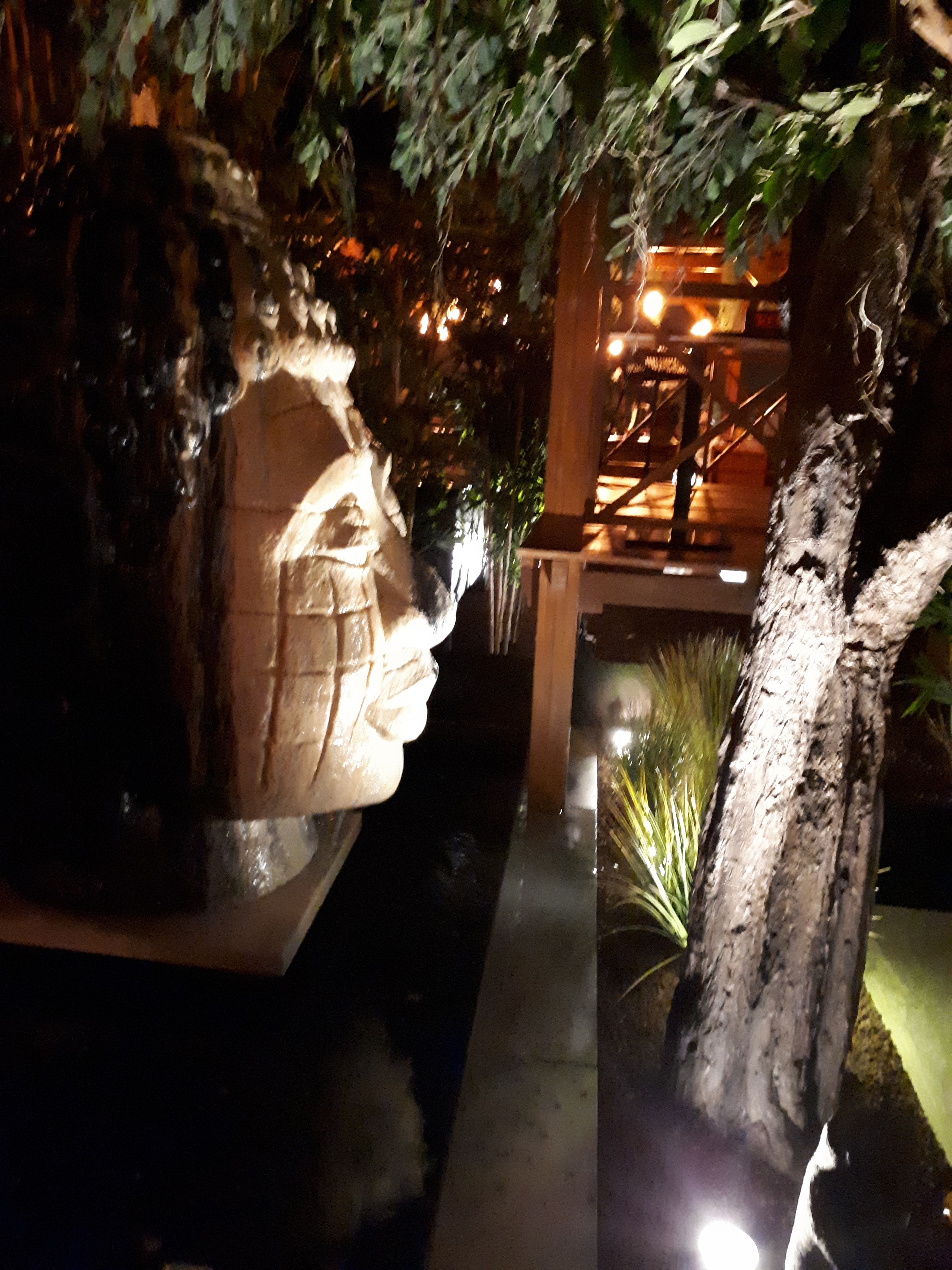 De l'extérieur, je n'ai pas été attirée par cet établissement. Un grand hangar (avec un joli dessin cependant). C'est une amie qui connaissait qui m'y a emmenée. Et gros, gros coup de coeur pour la déco. C'est clairement le plus de ce restaurant. On se croirait ailleurs, dans un pays lointain... surtout lorsque la nuit tombe, là on est en pleine jungle. Ambiance tamisée, et important : musique pas trop forte (c'est tellement plus agréable pour papoter). Je recommande.