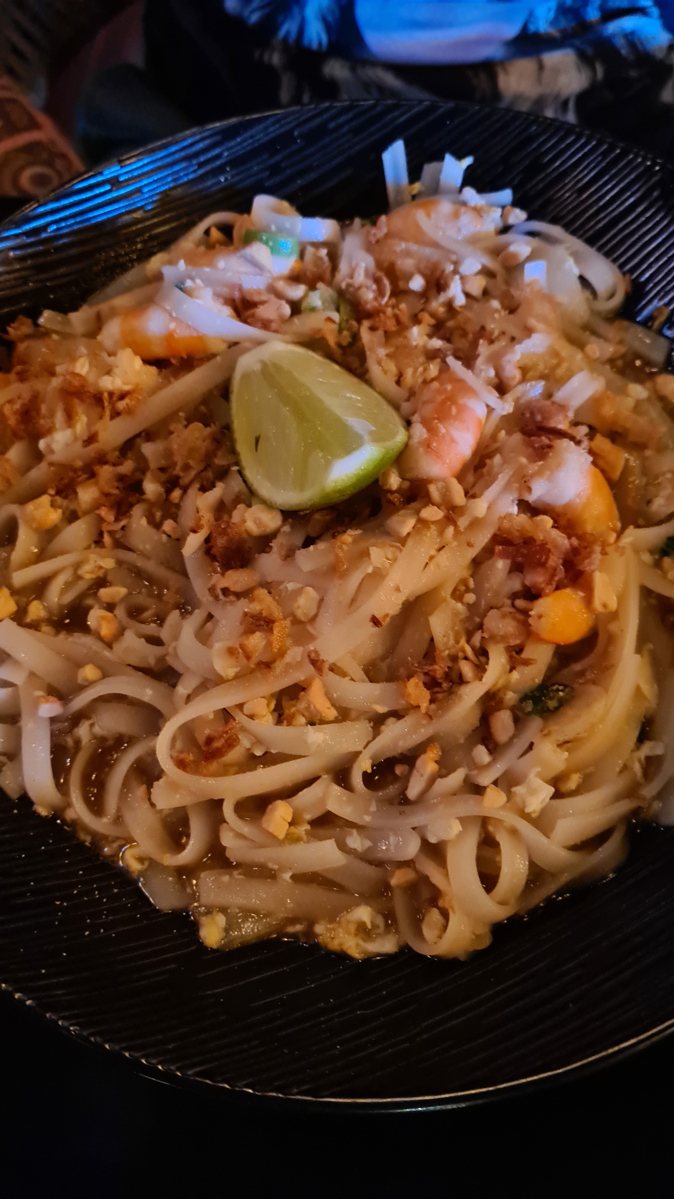 Cadre magnifique, atypique, il y a de l'eau, des poissons, on a l'impression de manger dans ma nature. En plat j'ai pris le padthai, très copieux je n'ai pas pu finir et vraiment excellent !!! Je recommande le personnels étaient rapide et sympathique.