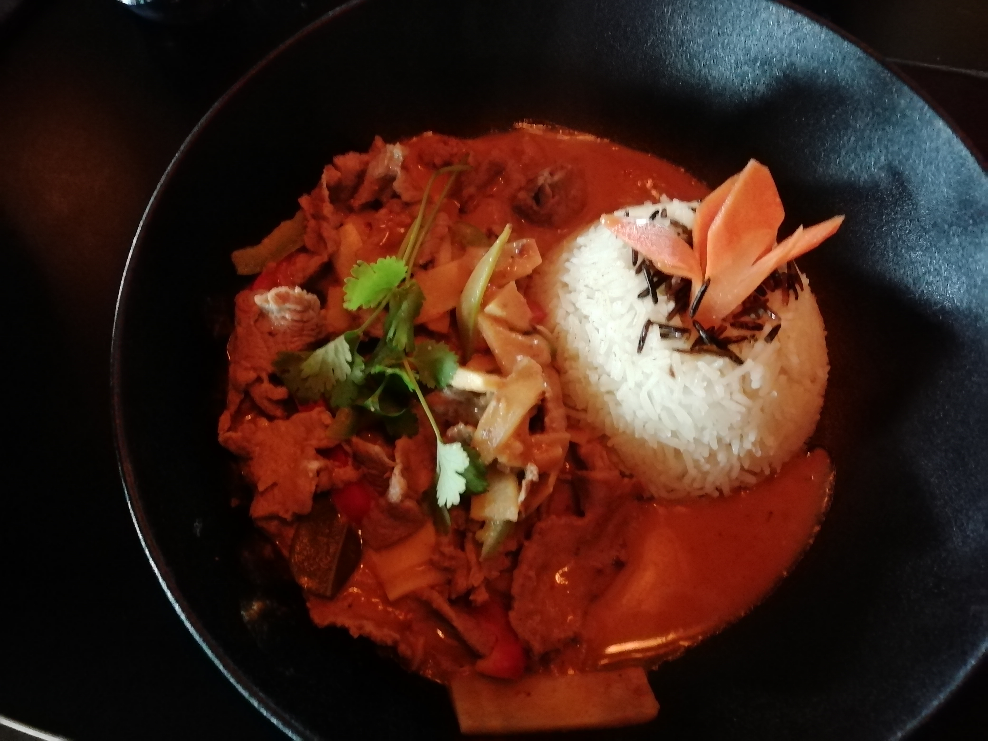 Je mets 4 étoiles pour la déco, le passage obscur avec les luminaires qui éclairent les statues de boudha pour accéder au restaurant est juste magnifique . Le restaurant est très grand donc de l'espace entre chaque table, la cuisine thaï très correct et le service efficace.