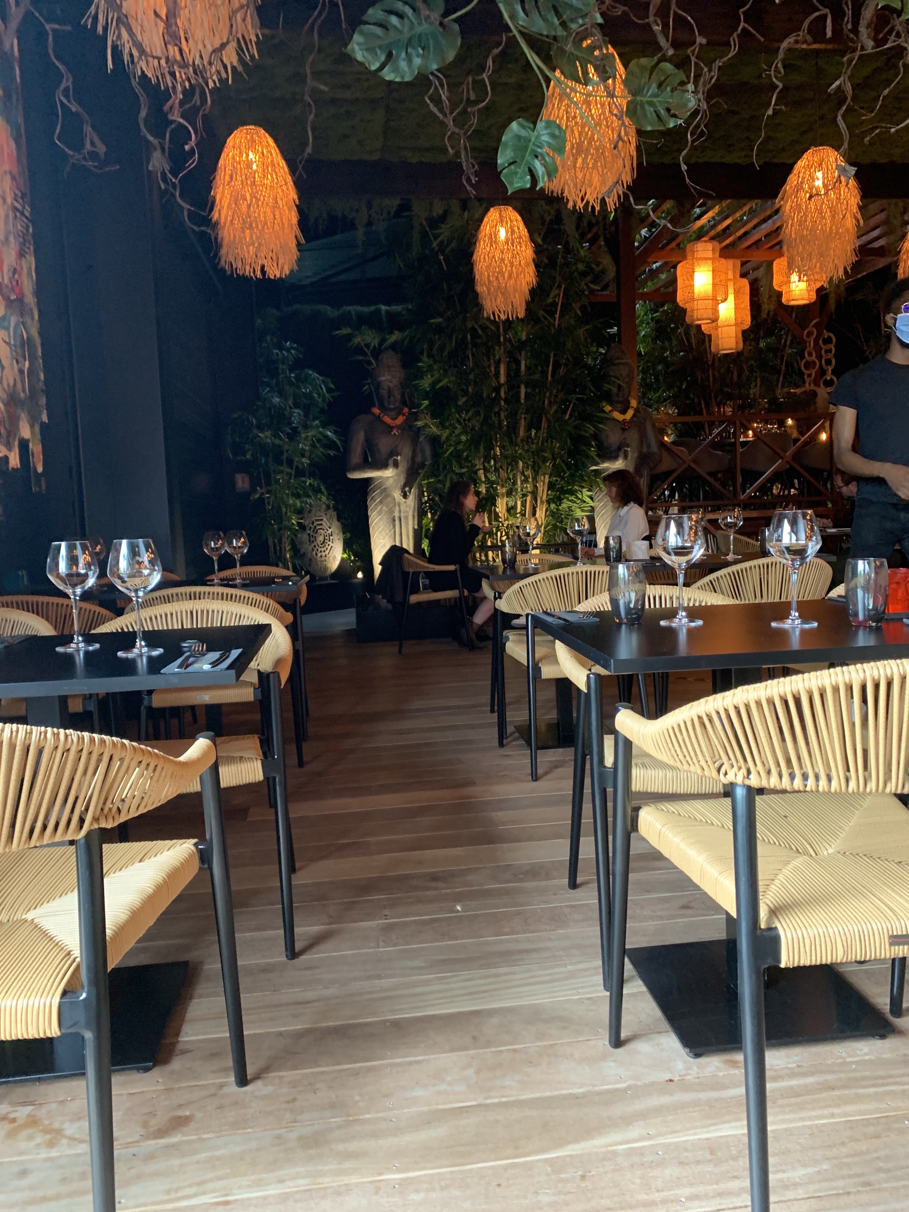 Établissement avec une ambiance balinaise et un décor exceptionnel côté bar. Malheureusement côté restaurant Le cadre est plus banal... Dommage ! Carte semi gastro proposant des plats originaux et fins. Un vrai délice des papilles ! Une équipe à l'écoute (notamment la placeuse) qui se démène pour satisfaire sa clientèle. Attention par contre au niveau sonore côté restaurant et à la proximité entre les tables ! Pas terrible pour un dîner en amoureux ! Au final, cet établissement est parfait pour un dîner ou pour boire un verre entre copains ! Vous êtes fêtards, branchés et vous aimez la bonne cuisine, ce lieu est fait pour vous !