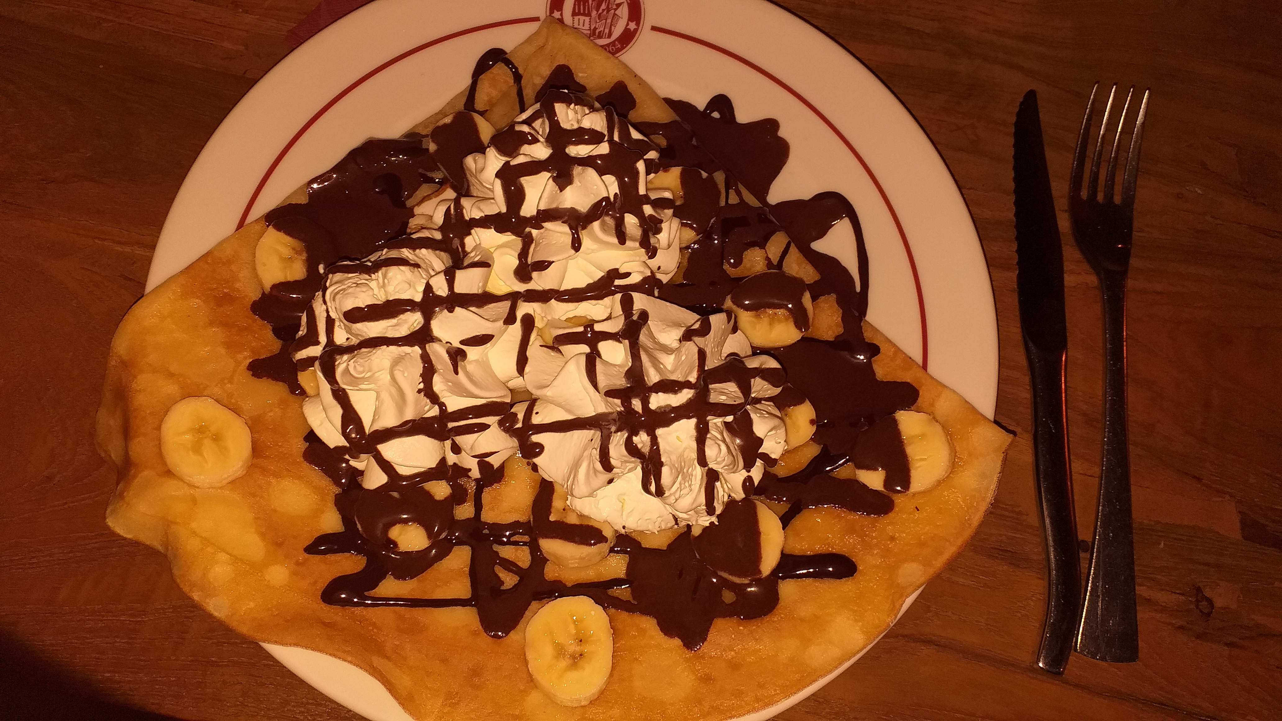 Nous avons voulu prendre une crêpe en fin de soirée mais nous avons bien senti que ça dérangeait. Crêpe à la saveur du trop tard. Dommage