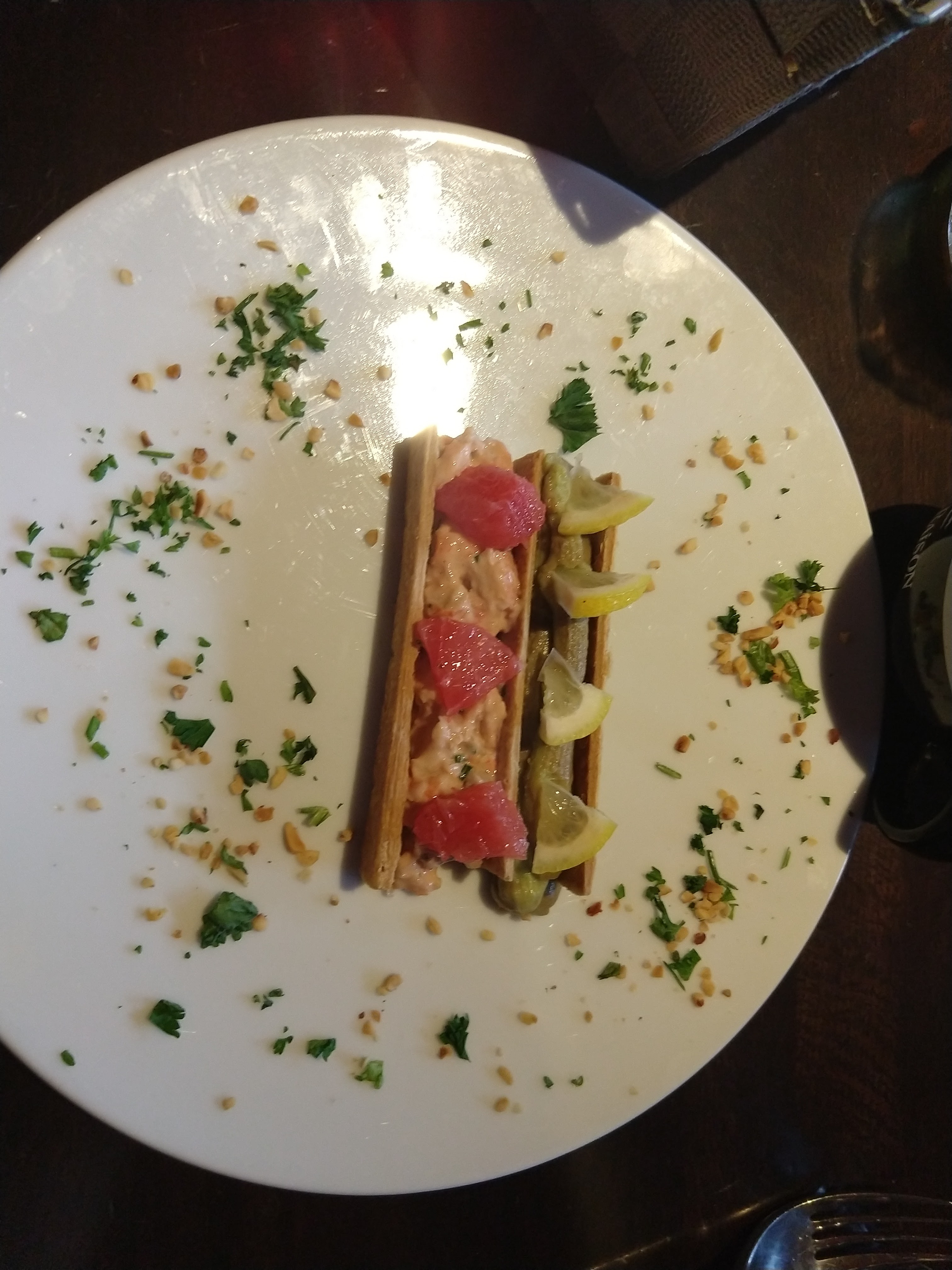 Un déjeuner et un dîner dans ce restaurant nous ont permis de découvrir une jolie carte variée. Qualité des produits au RDV, un service agréable. A recommander !