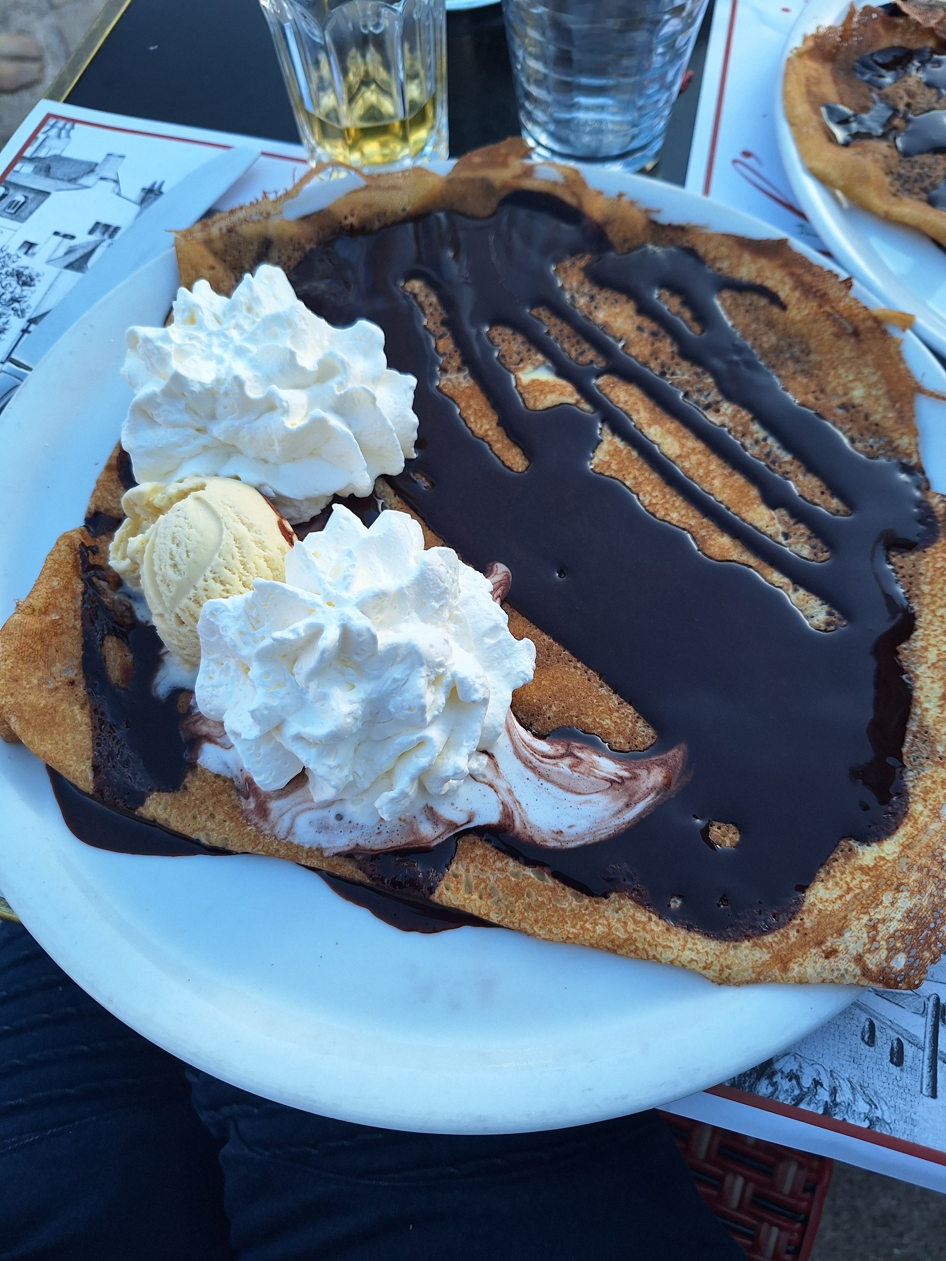 Ballade ensoleillée pour les semaines du Golfe à St Goustan près d'Auray. Halte gourmande en terrasse pour un chocolat viennois et une crêpe beurre sucre...hummmm! Service rapide et agréable malgré l'affluence. J'y retournerais sûrement. A recommander.