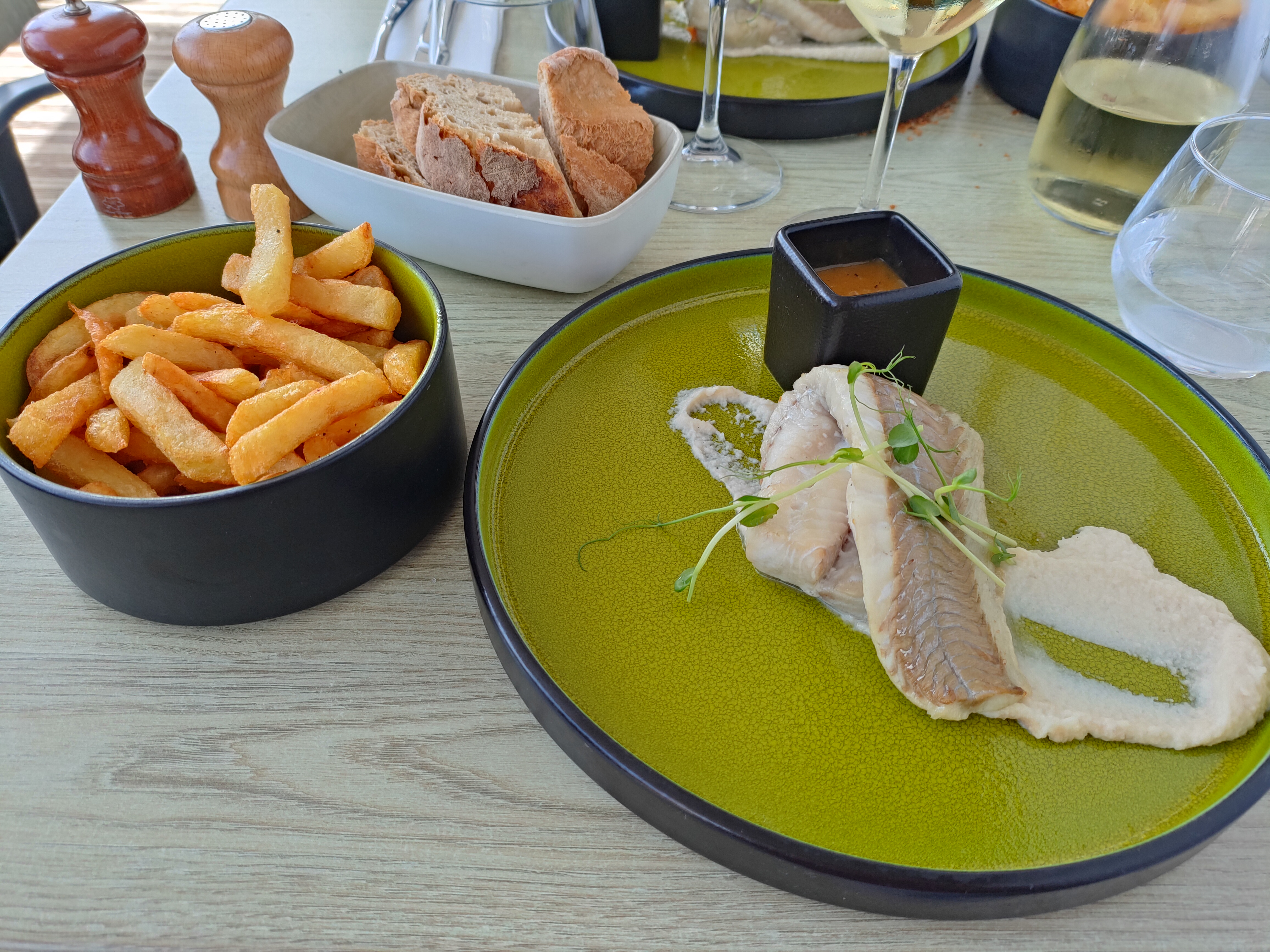 Excellentes moules, par chance en début de saison, locales de surcroît. La cheffe apporte un soin particulier à sa cuisine, bravo !