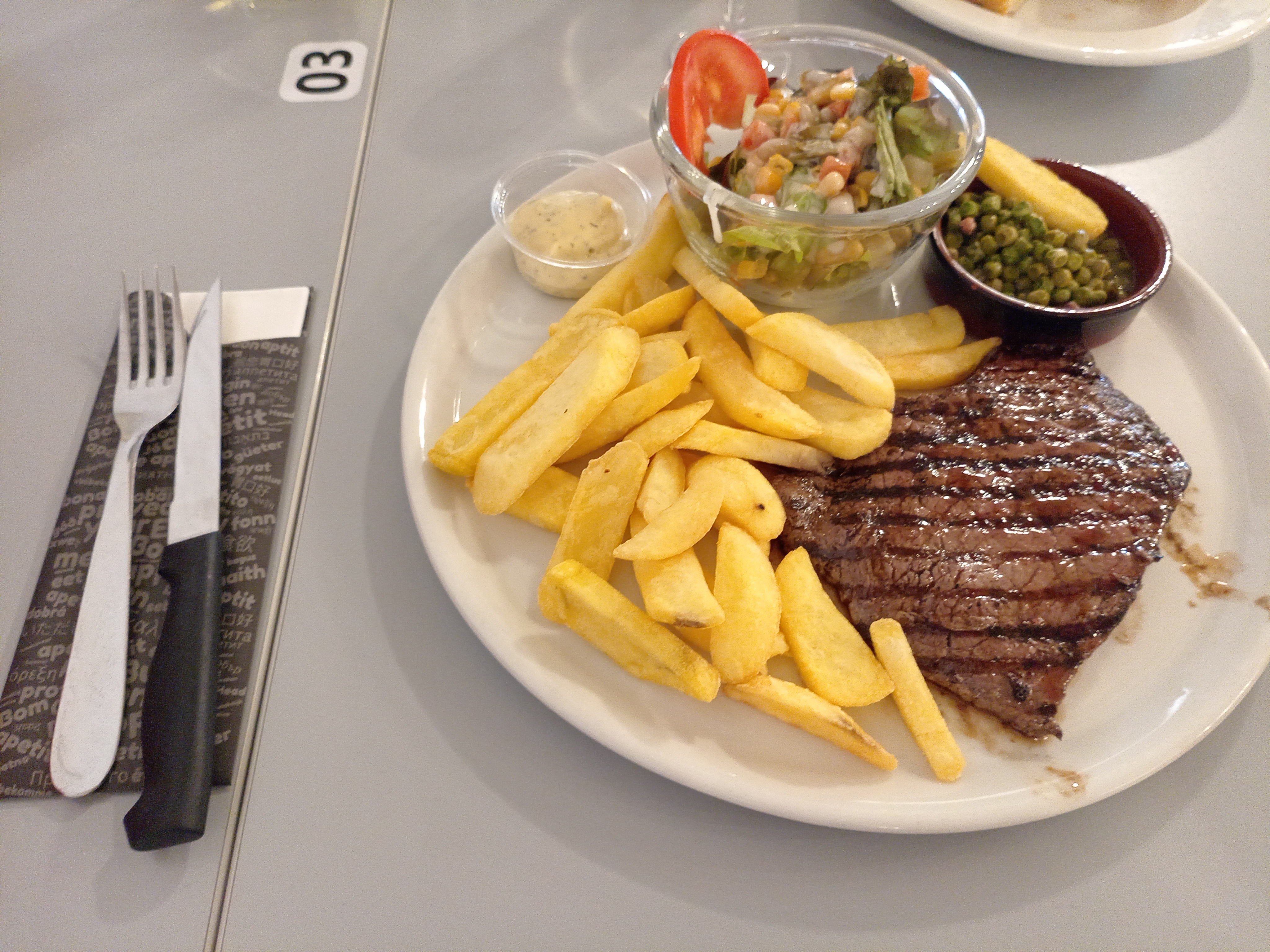 Repas très correct, camembert rôti à tomber par terre. Frites surgelées, mais de type Steakhouse et très bien saisies, donc qui passent très bien. A noter l'accueil et le service de grande qualité du serveur Carl, une personne qui aime son métier, et ne manque aucunement de le faire ressentir.