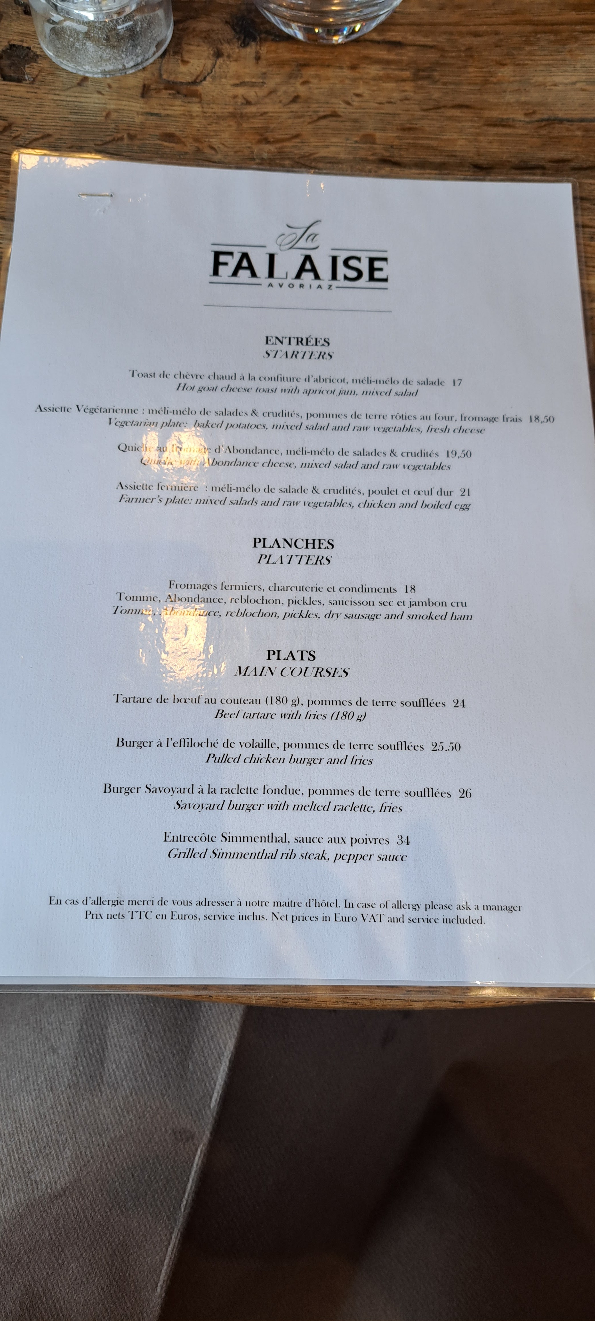 Que dire, tout est parfait, l’environnement, le service, la qualité des plats proposés, le personnel chaleureux et ultra professionnel, vous ne vivrez pas l’expérience Avoriaz a 100% si vous n’êtes pas passé par « La Falaise » Hâte d’être à l’hiver pour y revenir !