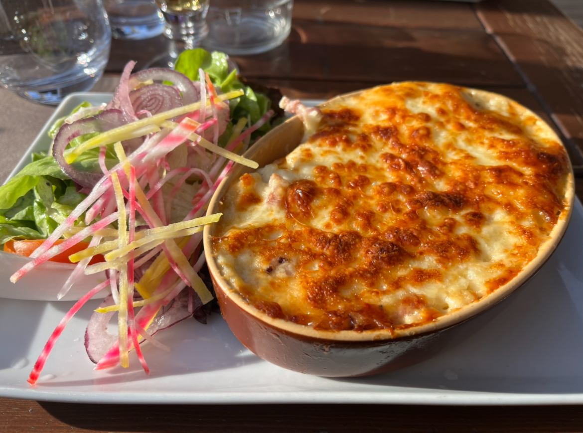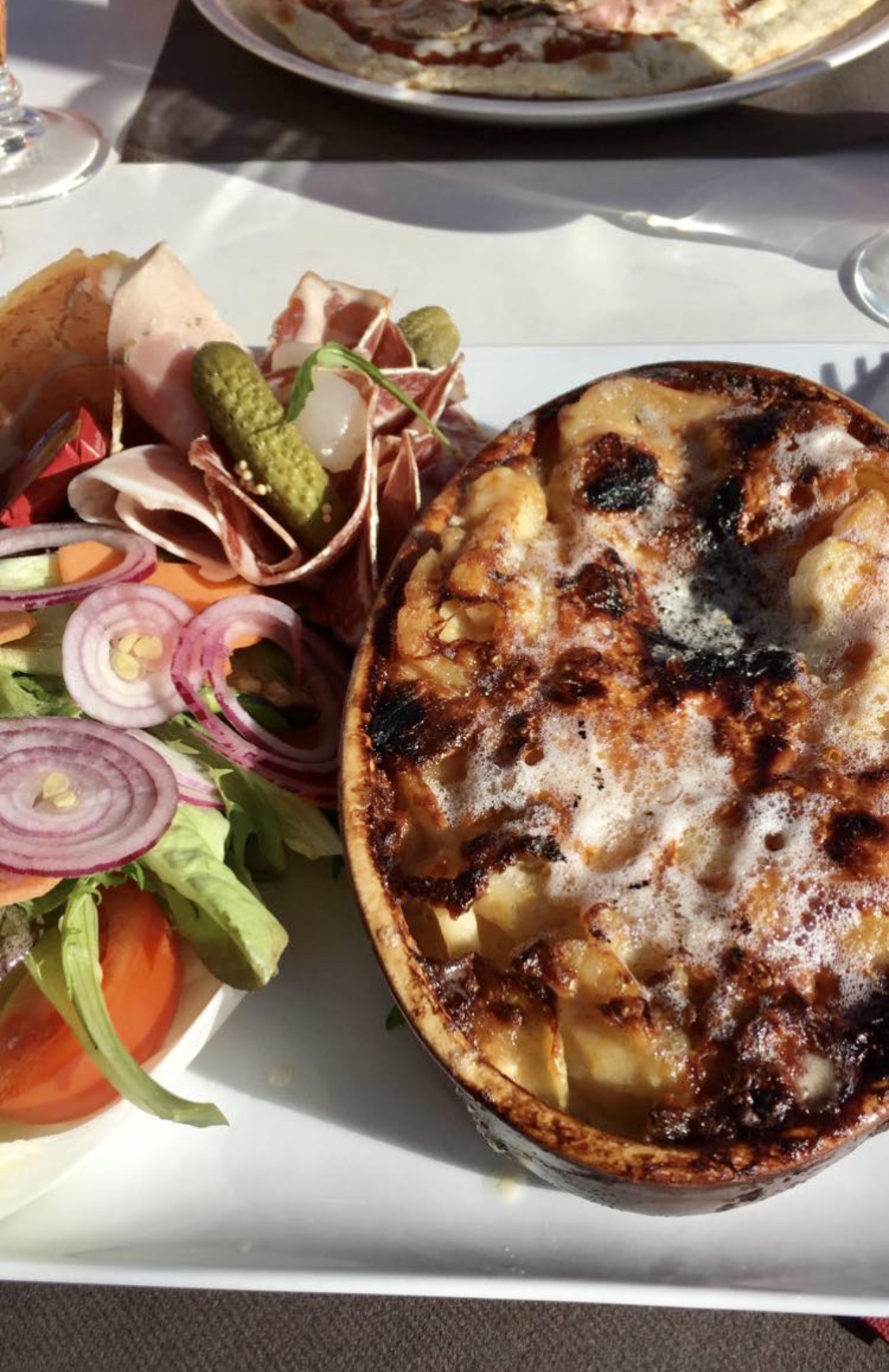 Arrivée au bon moment, sans réservation pour 6 personnes. Nous avons choisi 5 plats du jour tartiflette et salade et 1 plat de lasagnes maison et salade, le tout accompagné de boissons. Moment agréable et repas copieux.