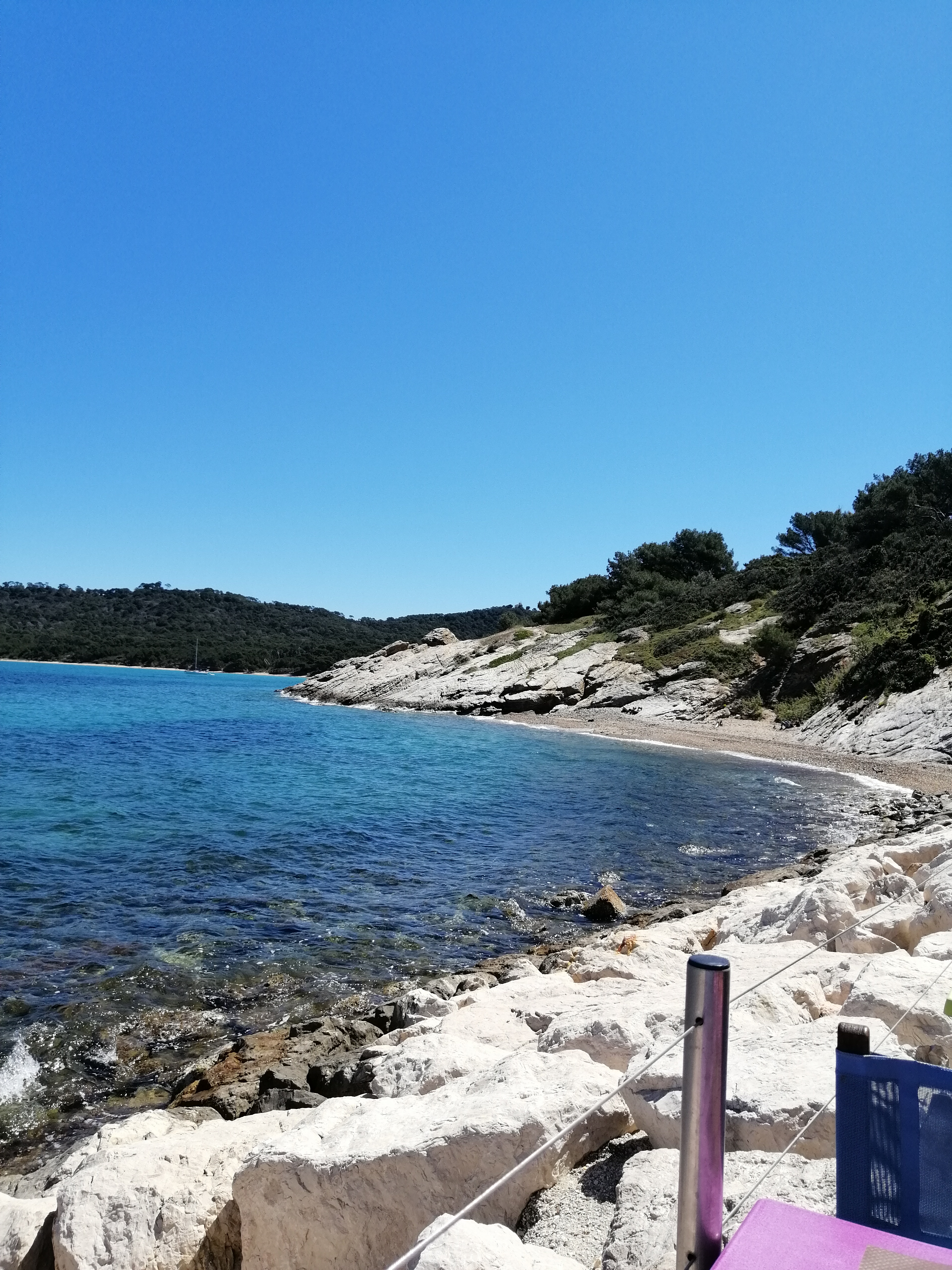 Personnel aimable très mal organisé. Nous avons failli partir tellement l'attente est interminable. Prévoyez minimum 2h de temps. Nous sommes arrivés à 12h30. Nous avons pris une salade, pas assez de sauce bien présentée mais pas très fournie... C'est sûr que nous sommes sur Porquerolles mais c'est un peu cher pour ce que c'est... À noter que le personnel s'est excusé pour les désagréments... Nous avons ensuite découvert plein de petits restaurants au centre avec des prix abordables. Préférez le centre du village. Certes vous n'aurez pas de vue sur la mer mais serez mieux servis.
