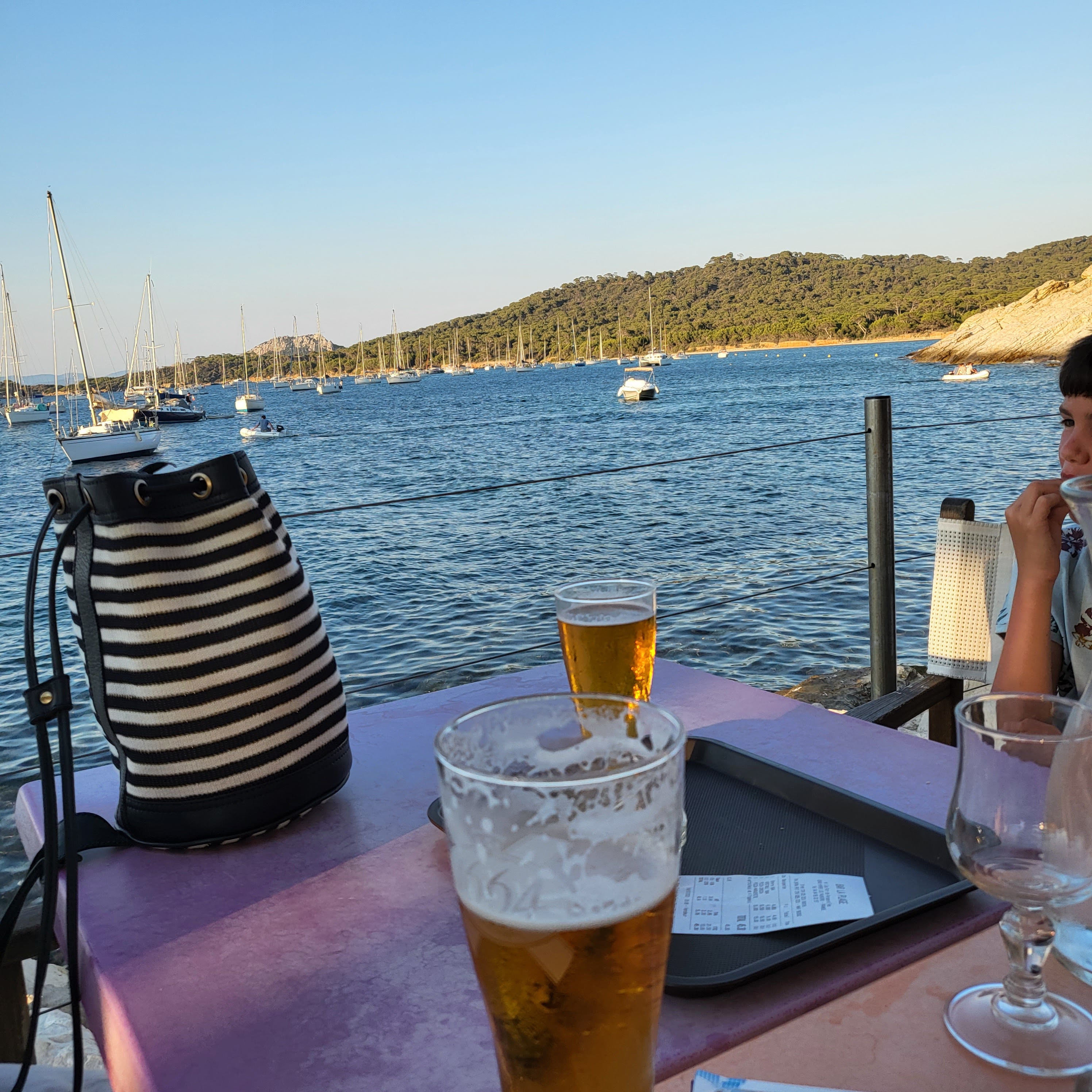 Tous les ans sur porquerolles. J’ai jamais été autant mal accueilli que lors de notre café en milieu d’après midi . Arriver par l eau avec notre bateau, donc en maillot de bain et torse nue on c’est fait jeter comme des malpropres alors qu il y avait 3 clients assis au table à torse nu . Lors du paiement le serveur a presque refuser mon billet de 20€ sous prétexte qu il n avait aucune monnaie . Nous avons donc du nous déplacer sur le port debout au soleil . Je ne suis pas du genre à faire des histoires . Mais il ne faudrait pas laisser les problèmes et frustration personnel de certaines personnes Agir sur la clientèle .