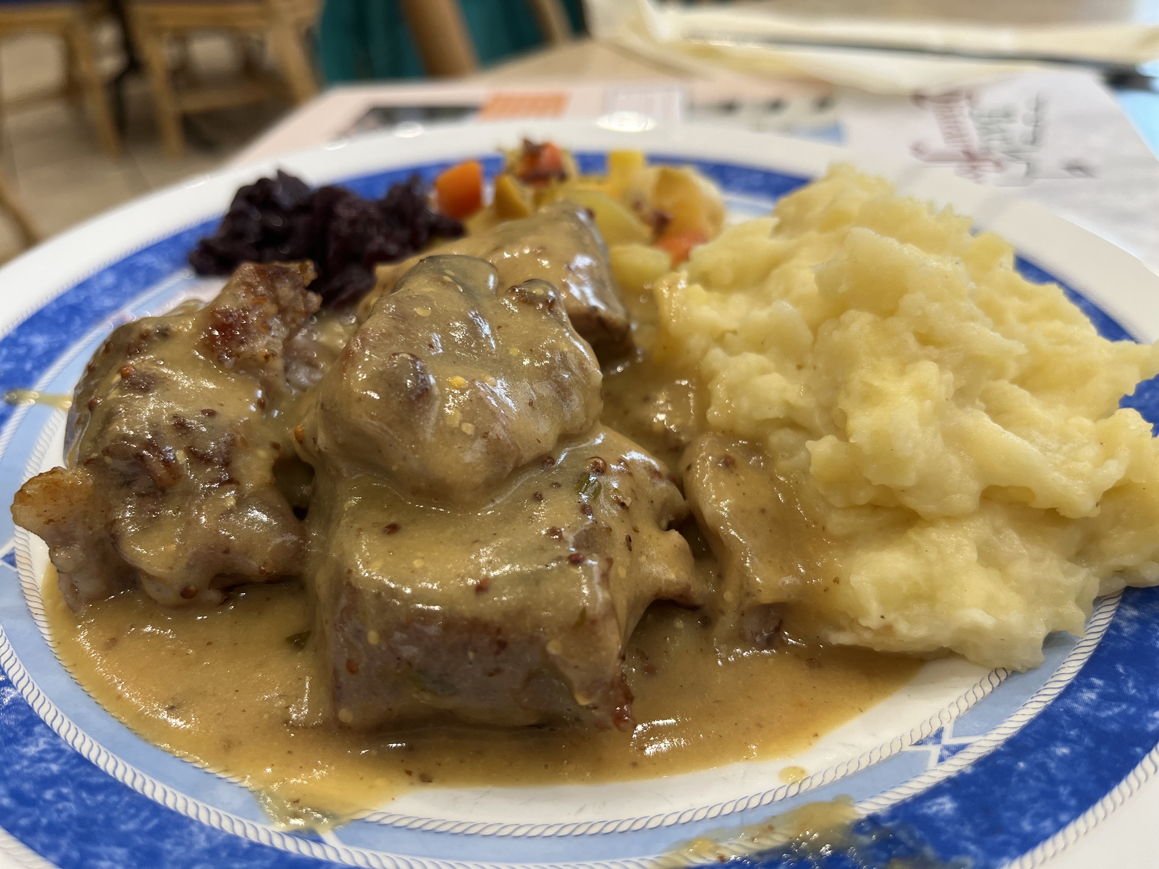 Repas copieux mais sans saveur.cuisine du terroir. Décoration vieillotte